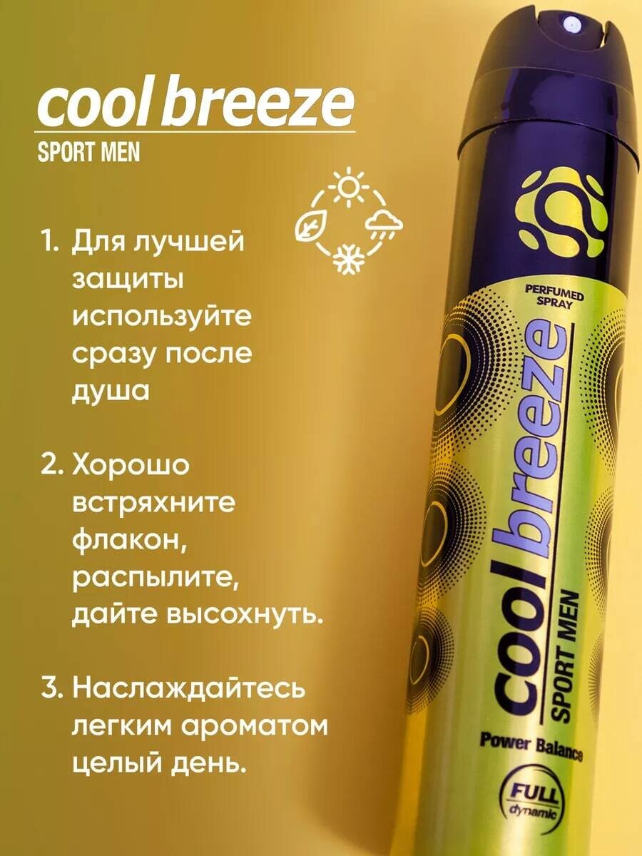 Купить Дезодорант мужской спортивный COOL BREEZE Sport Men Power Balance 200 мл Для спорта, парфюмированный цветочно-древесный
