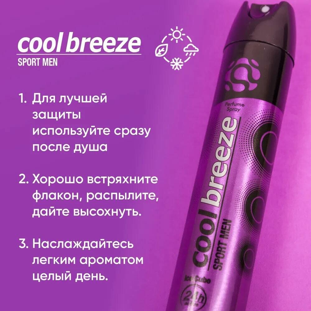 Купить Дезодорант мужской спортивный COOL BREEZE Sport Men Ice Cuber 200 мл Для спорта, парфюмированный цветочно-мятный