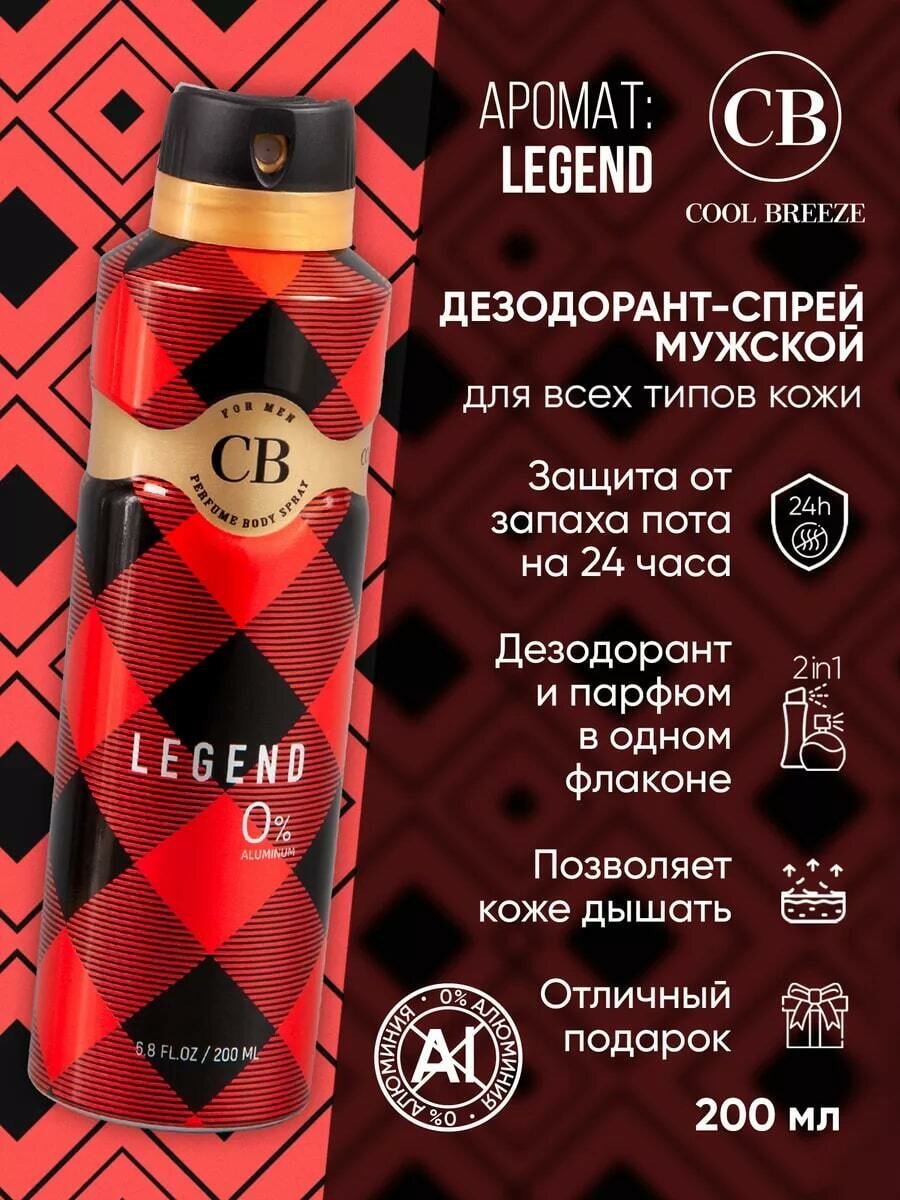 Купить Дезодорант мужской COOL BREEZE CB Legend 200 мл Парфюмированный цветочно-мускусный