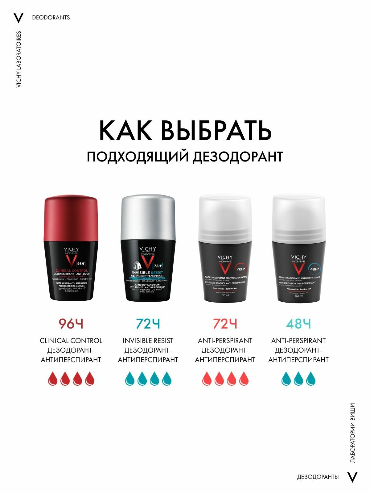 Ниже Вы можете прочитать отзывы на Vichy Homme Clinical Control Мужской дезодорант-антиперспирант от пота, 96 часов защиты, с цинком и перлитом, 50 мл, ознакомится с подробными характеристиками, посмотреть интересные обзоры и фотографии на Vichy Homme Clinical Control Мужской дезодорант-антиперспирант от пота, 96 часов защиты, с цинком и перлитом, 50 мл.