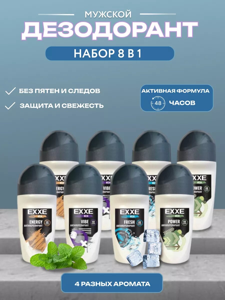 Антиперспирант EXXE, мужской, ролик, набор 8шт, флакон, 150мл интересное: