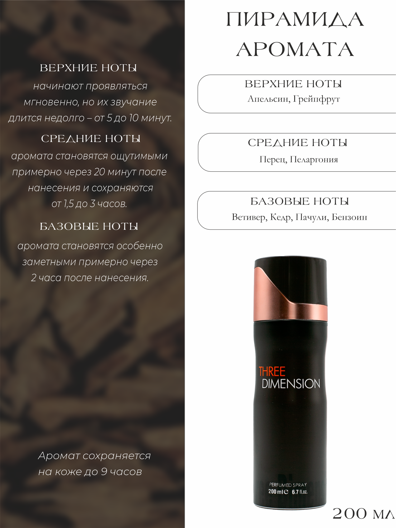 Мужской парфюмированный дезодорант Three Dimension, Fragrance World, 200 мл интересное: