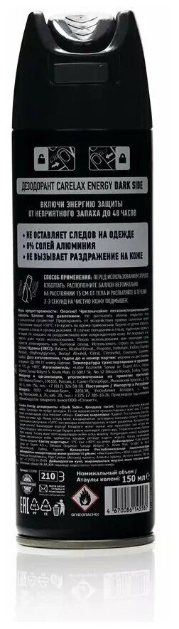 Дезодорант мужской Carelax Energy аэрозольный, DARK SIDE 150 мл. интересное: