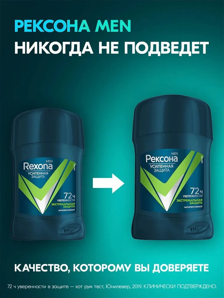 Купить Rexona Men антиперспирант-карандаш Экстремальная защита, усиленная защита от пота и запаха 48 часов, 2 x 50 мл (2 штуки)