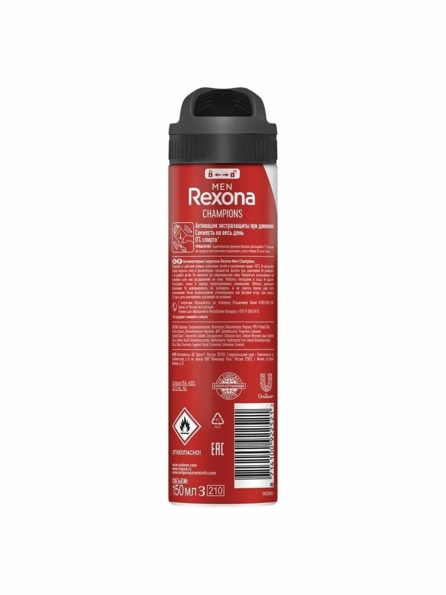 Ниже Вы можете прочитать отзывы на Rexona Men антиперспирант-дезодорант спрей Champions 150мл, ознакомится с подробными характеристиками, посмотреть интересные обзоры и фотографии на Rexona Men антиперспирант-дезодорант спрей Champions 150мл.