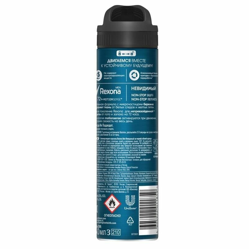 Антиперспирант Аэрозоль Rexona Men Невидимый на черной и белой одежде 150мл