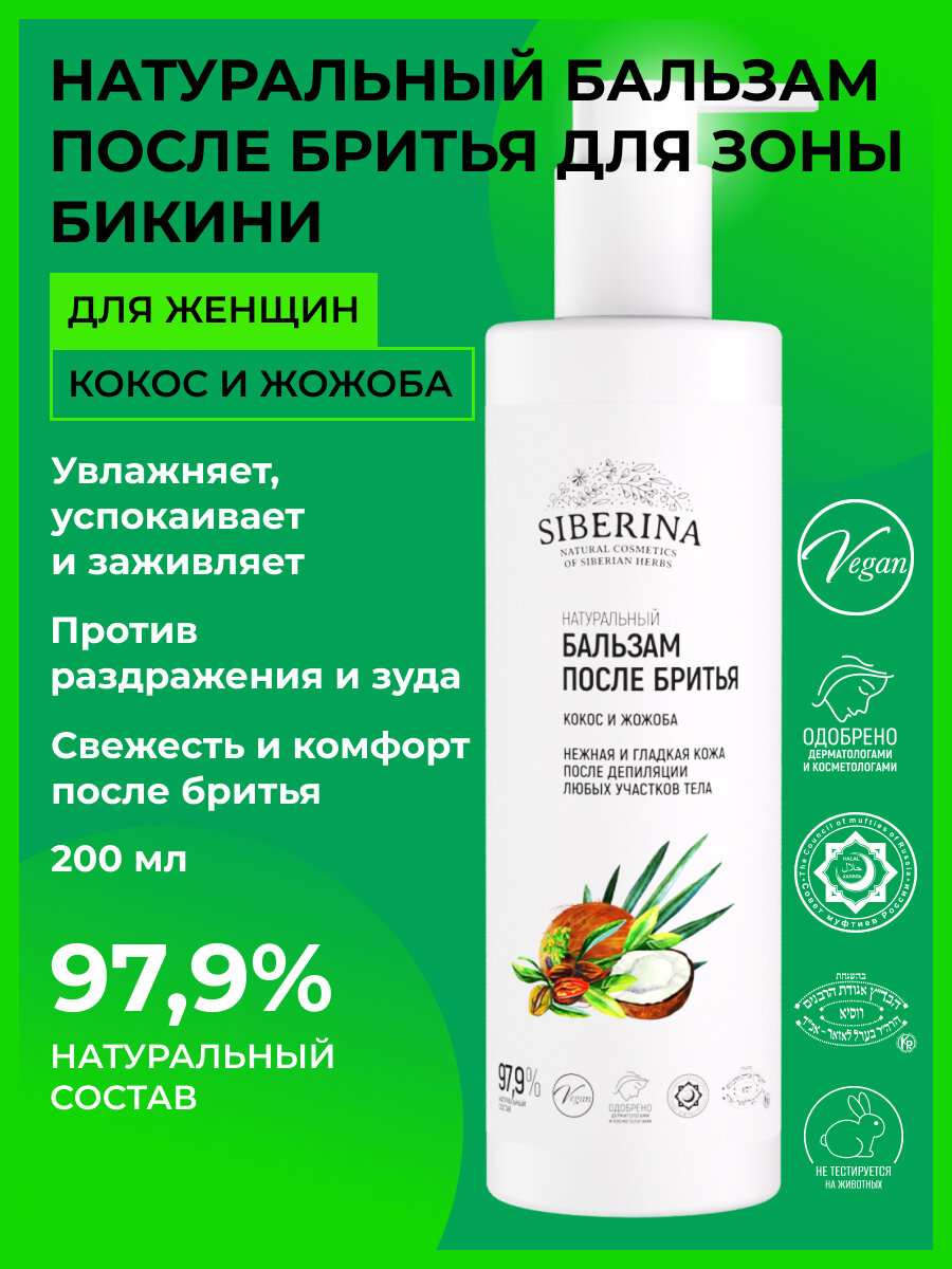 Siberina Натуральный бальзам после бритья «Кокос и жожоба» 200 мл интересное: