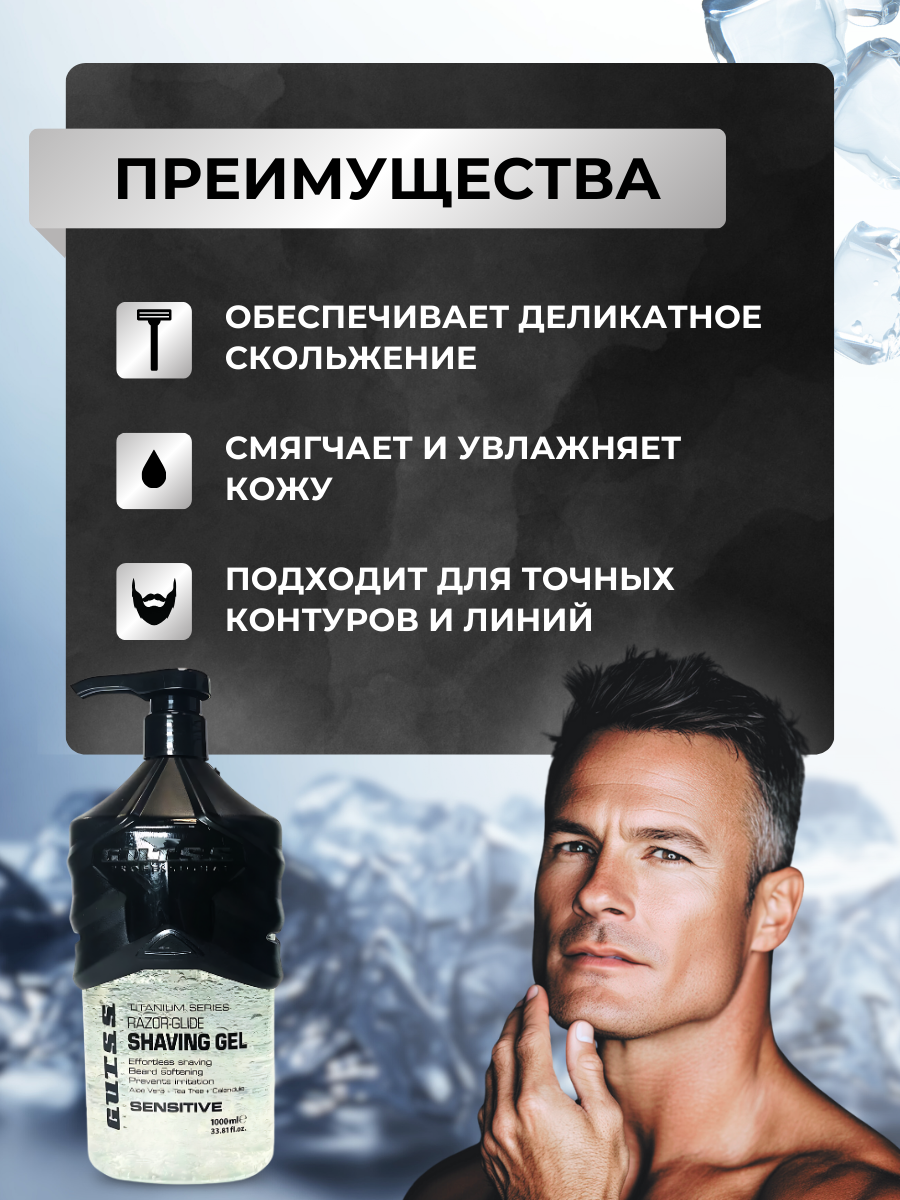 Гель для бритья мужской, для чувствительной кожи, 1000 мл, Gutss Shaving Gel Blue