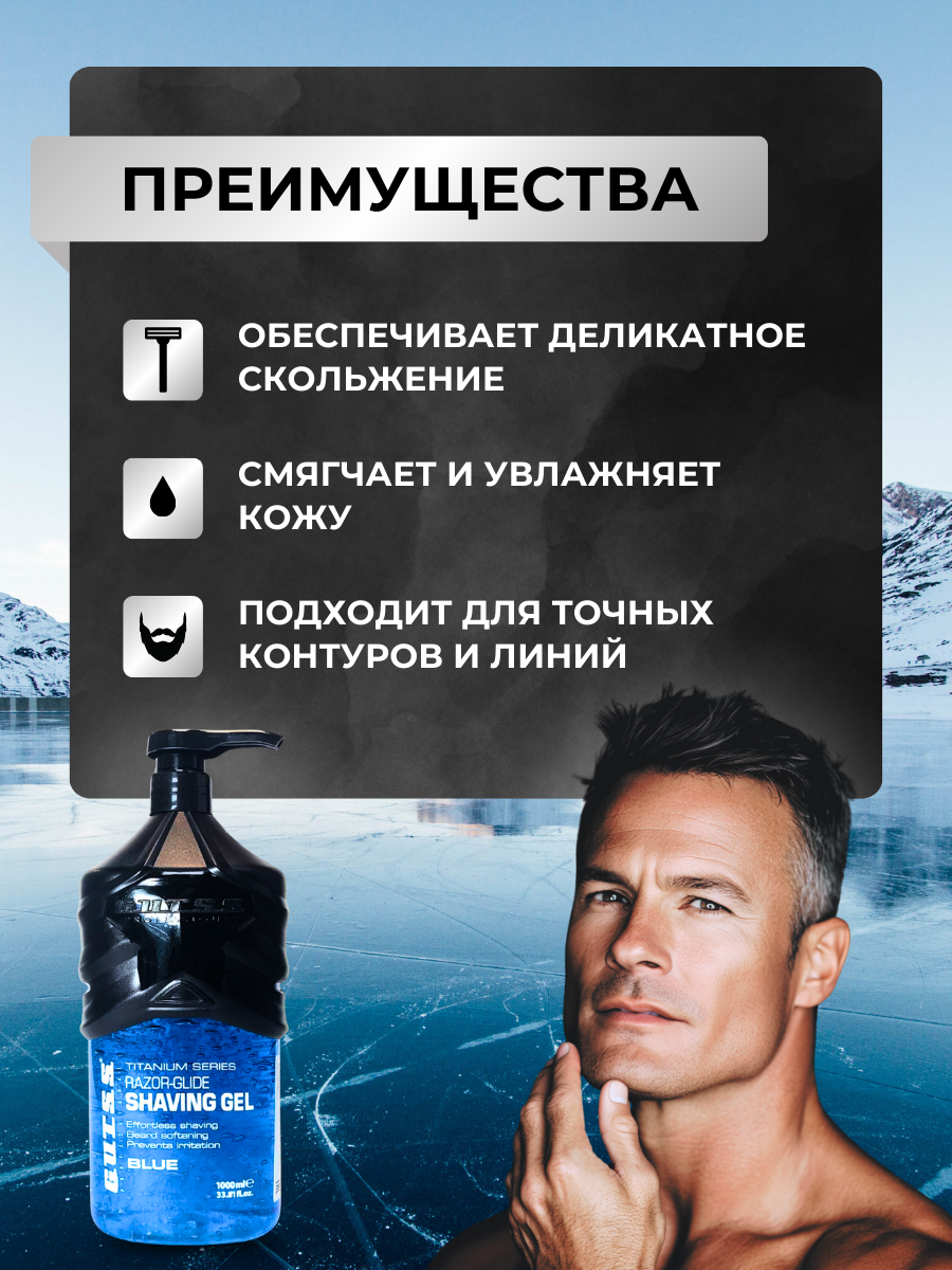 СохранитьГель для бритья мужской, для чувствительной кожи, 1000 мл, Gutss Shaving Gel Blue интересное: