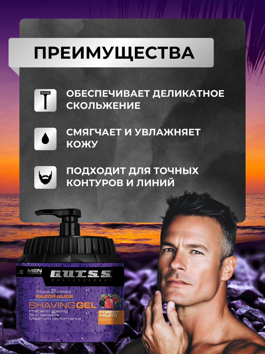 Гель для бритья мужской, для чувствительной кожи, Gutss Shaving Gel Fruits, 1000 мл
