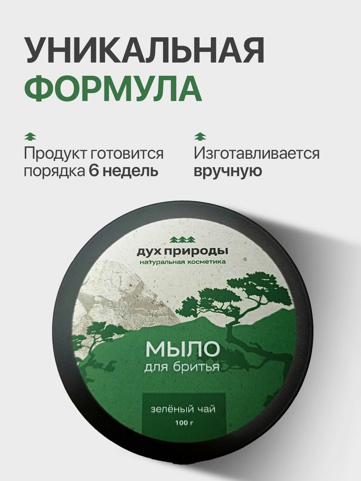Мыло для бритья мужское, Зелёный чай, ДУХ ПРИРОДЫ, 100 г, для всех типов кожи интересное: