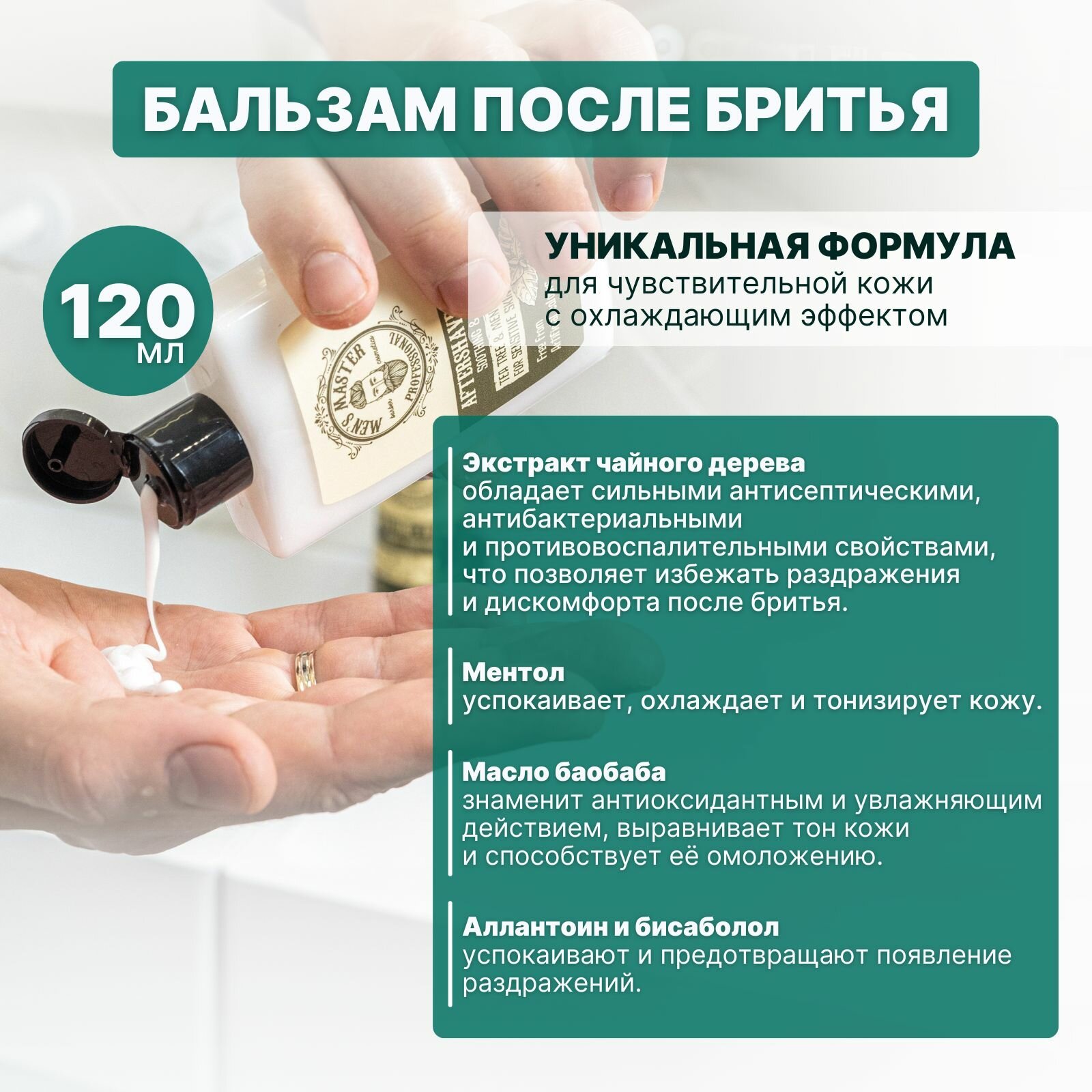 MEN'S MASTER / Лосьон после бритья увлажняющий 120 мл, Бальзам после бритья мужской для чувствительной кожи 120 мл