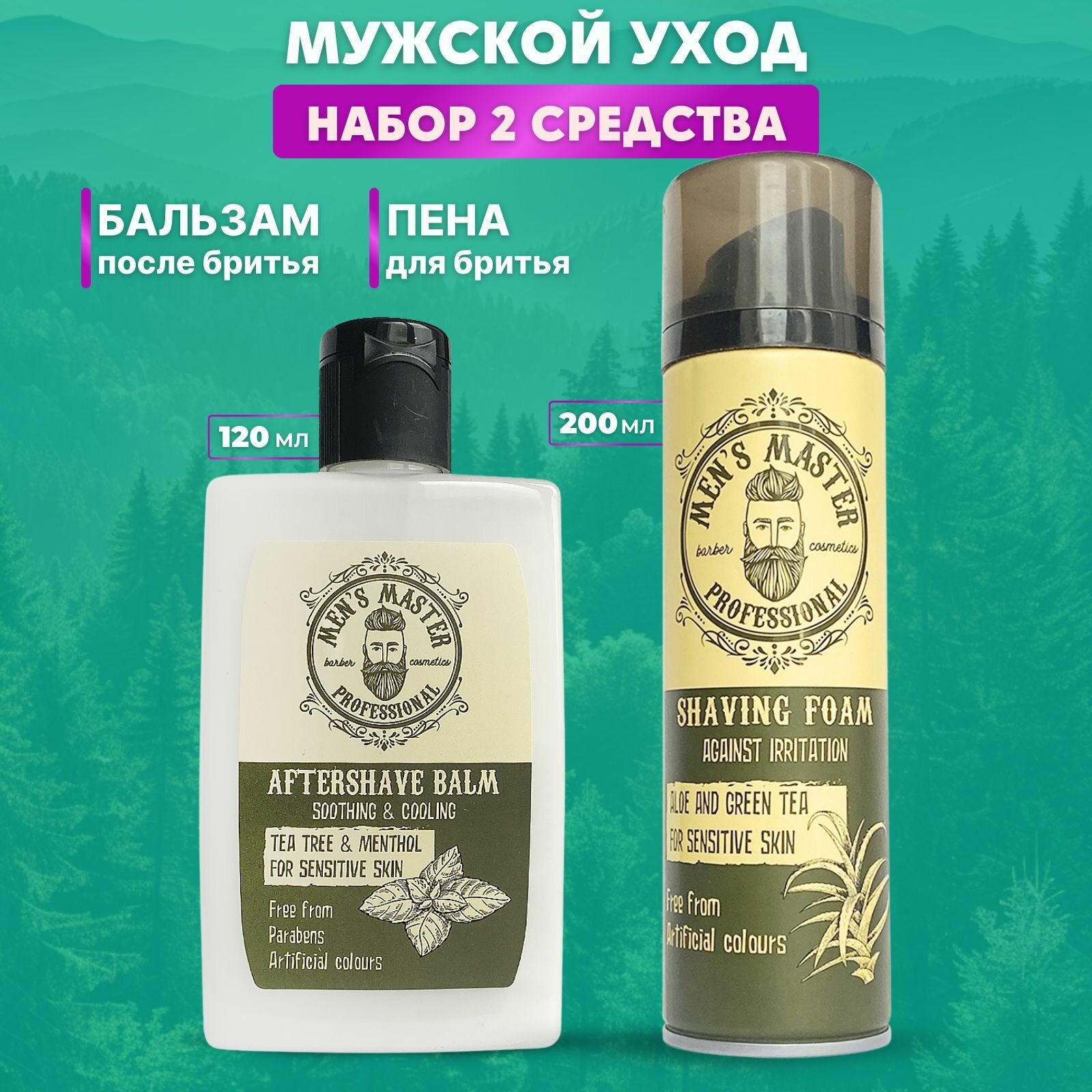 MEN'S MASTER / Лосьон после бритья восстанавливающий 120 мл, Пена для бритья мужская для чувствительной кожи 200 мл