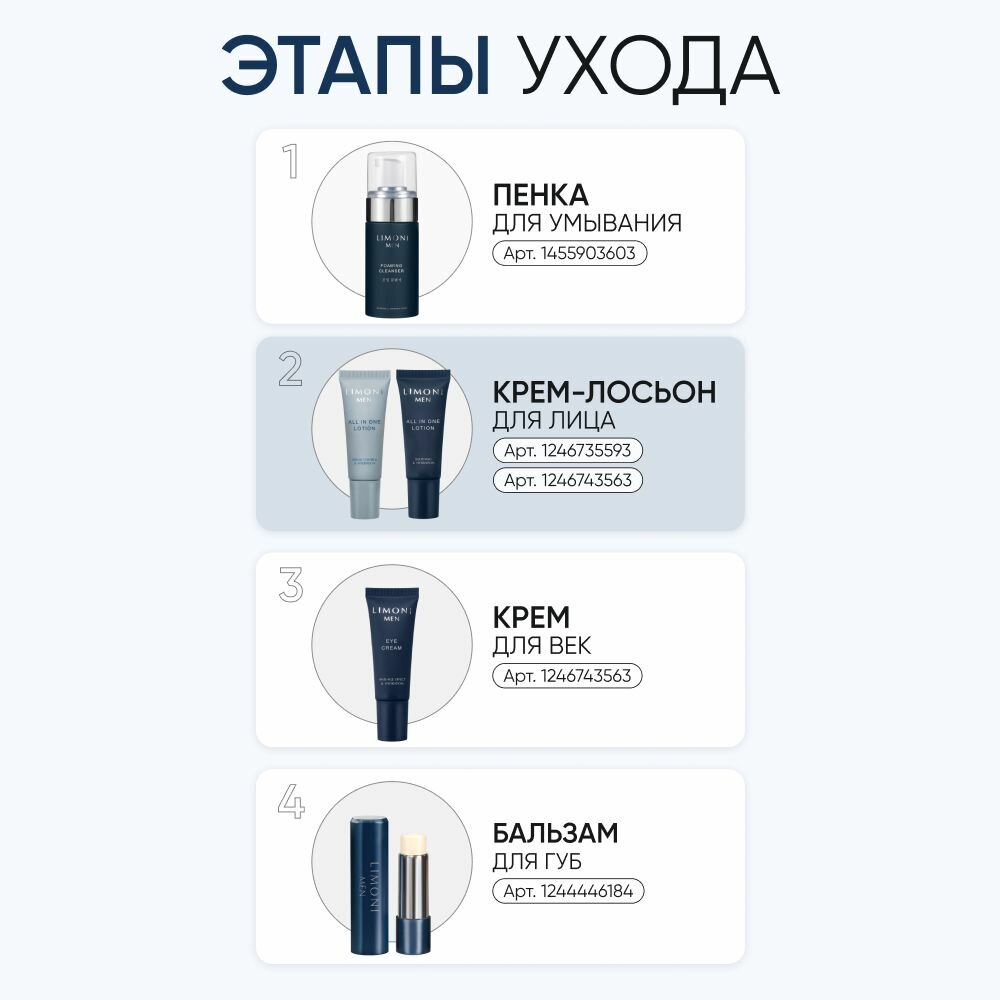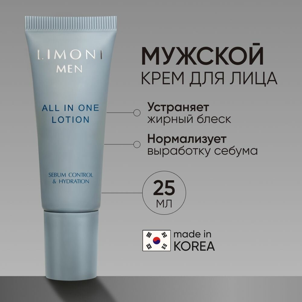 LIMONI MEN Мужской крем-лосьон для жирной кожи ALL IN ONE, Корея 25 мл интересное:
