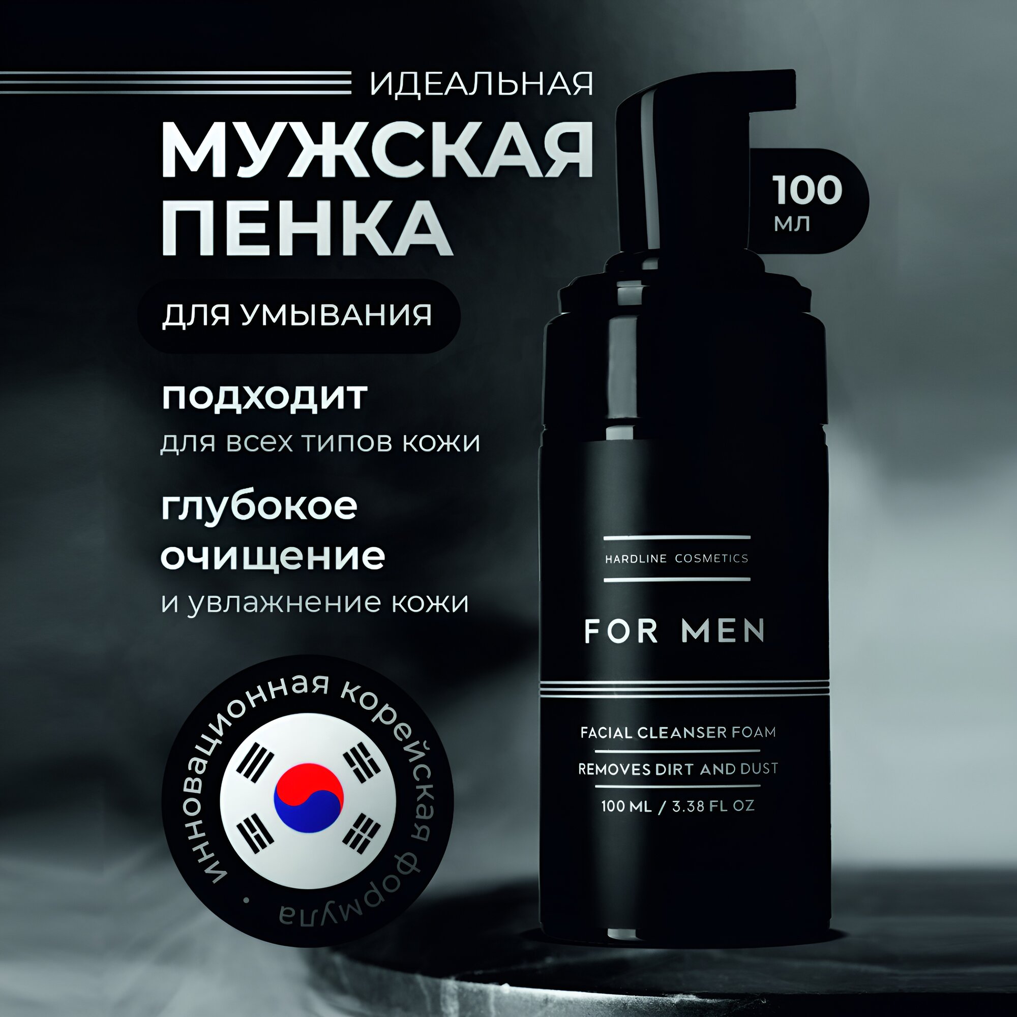 HARDLINE COSMETICS Пенка для умывания лица мужская очищающая против черных точек и воспалений, 100 мл интересное: