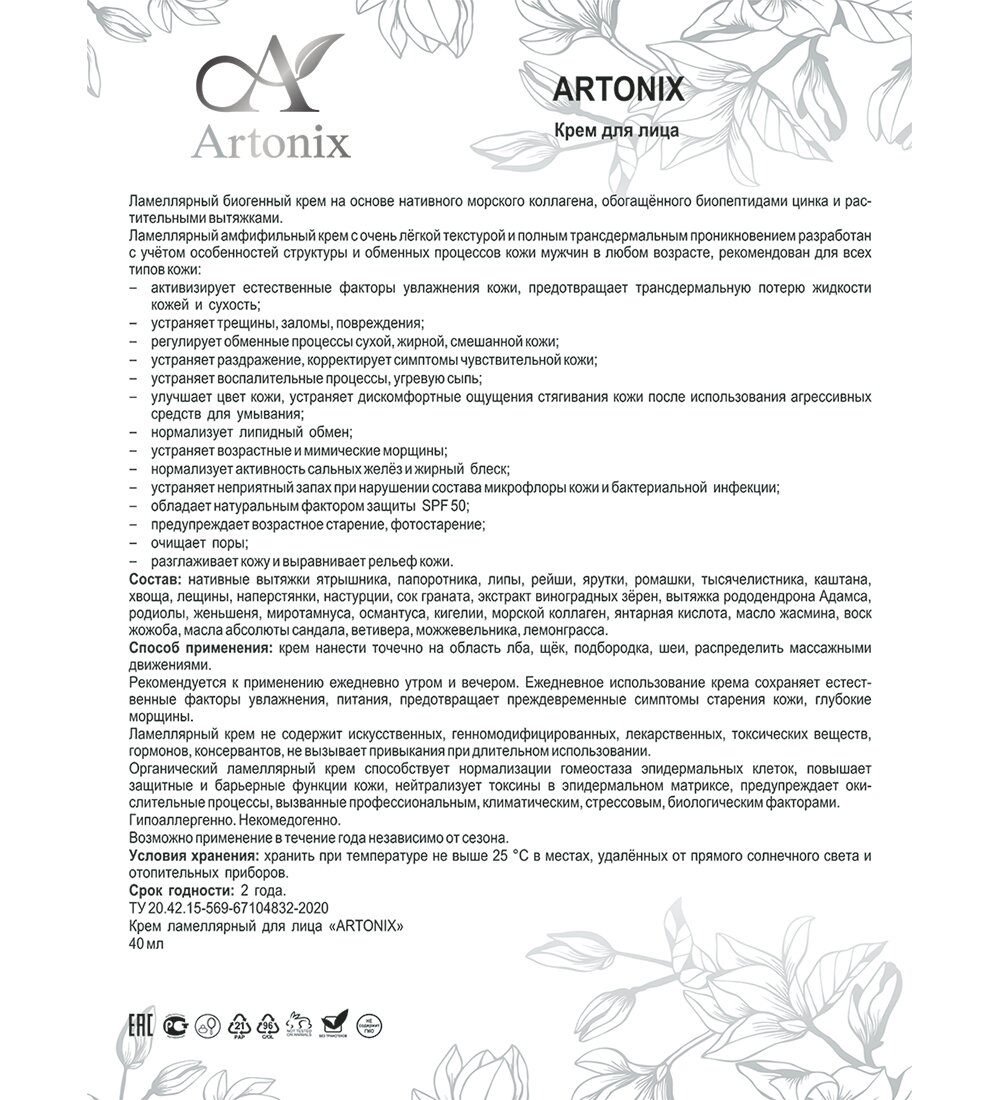 Сашера-МЕД "ARTONIX" Крем для лица интересное: