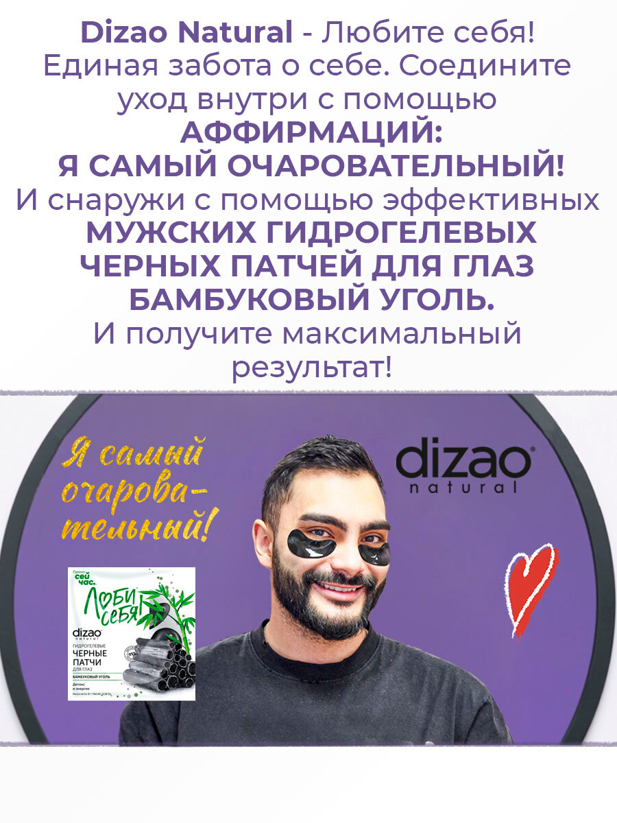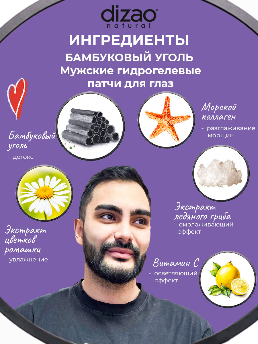 Патчи для глаз от отеков мужские, увлажняющие, питающие, от темных кругов набор Dizao "Бамбуковый уголь" 5 шт интересное:
