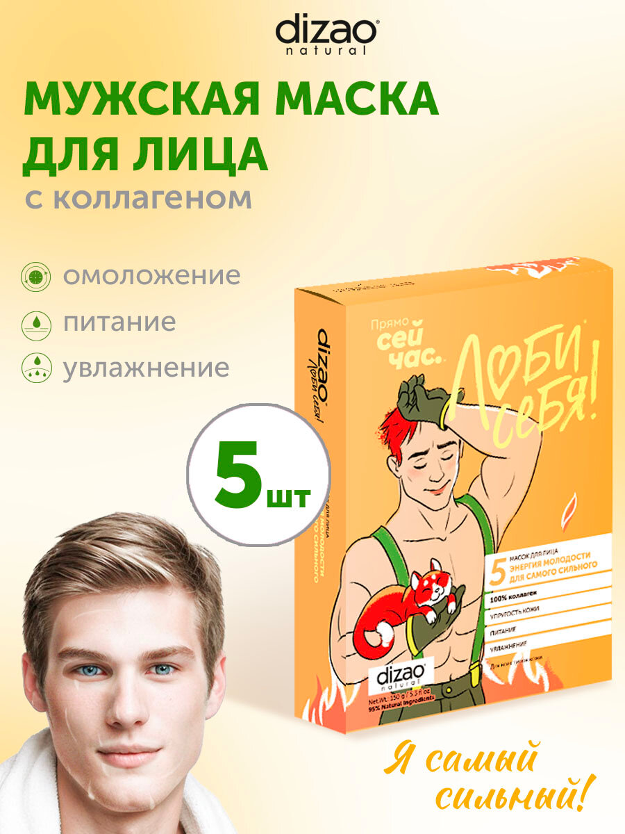 Маска для лица, шеи и подбородка тканевая для мужчин набор Dizao "100% Коллаген" 5 шт. интересное: