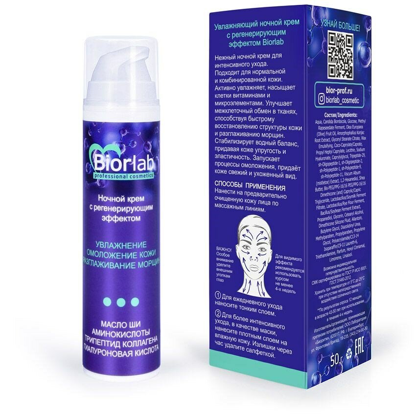 BIORLAB Крем увлажняющий ночной с регенерирующим эффектом | Биоритм, 50 гр интересное: