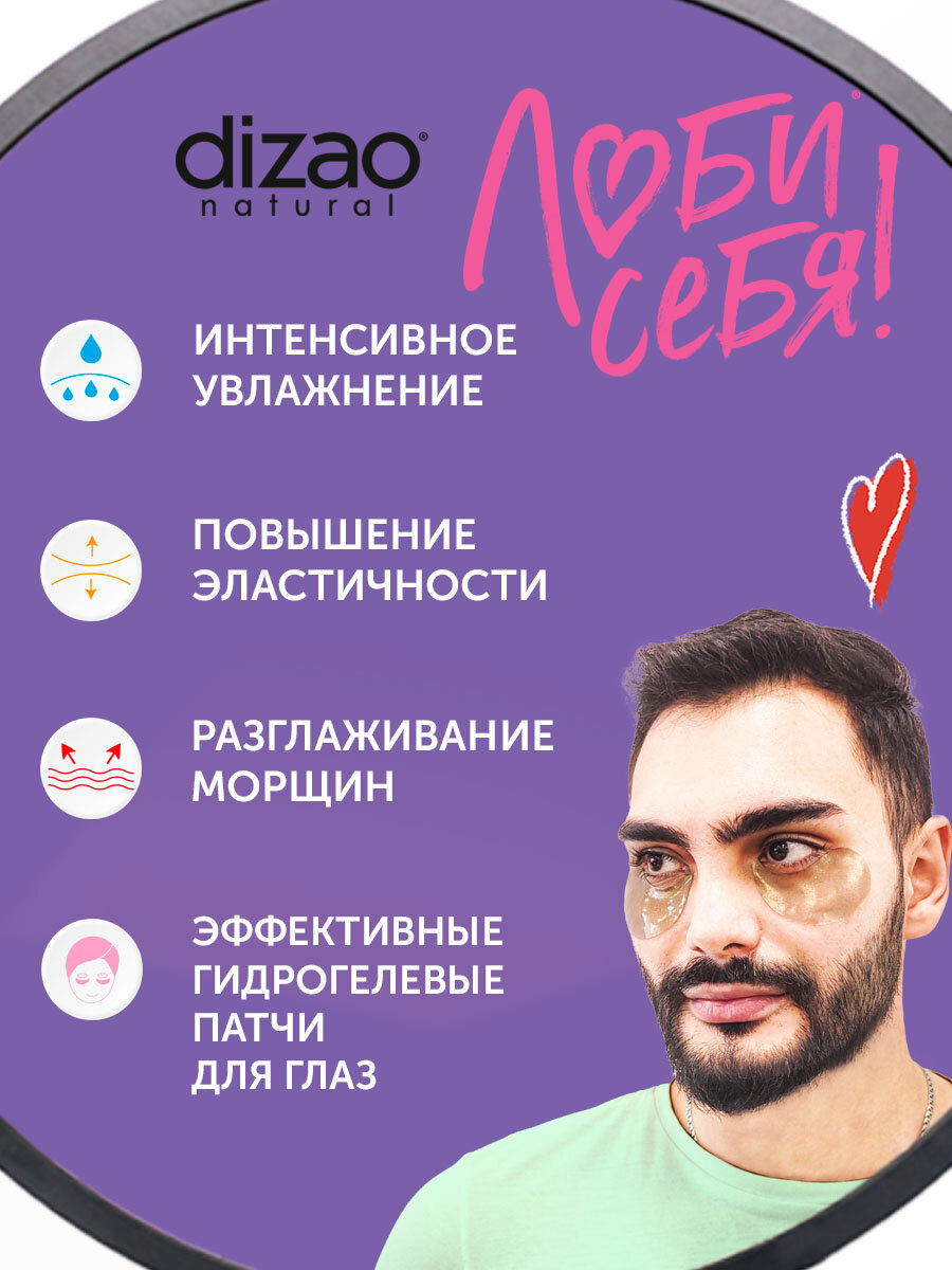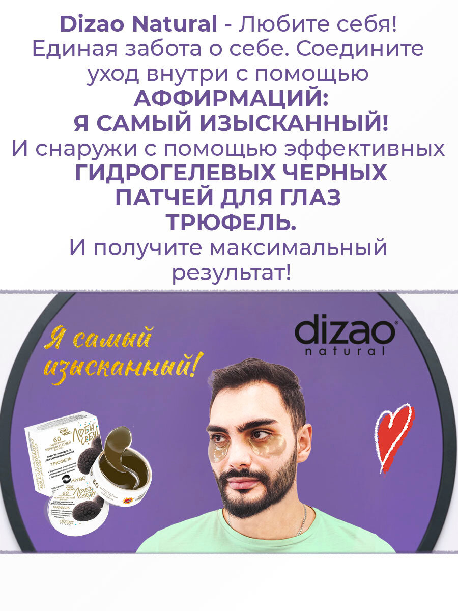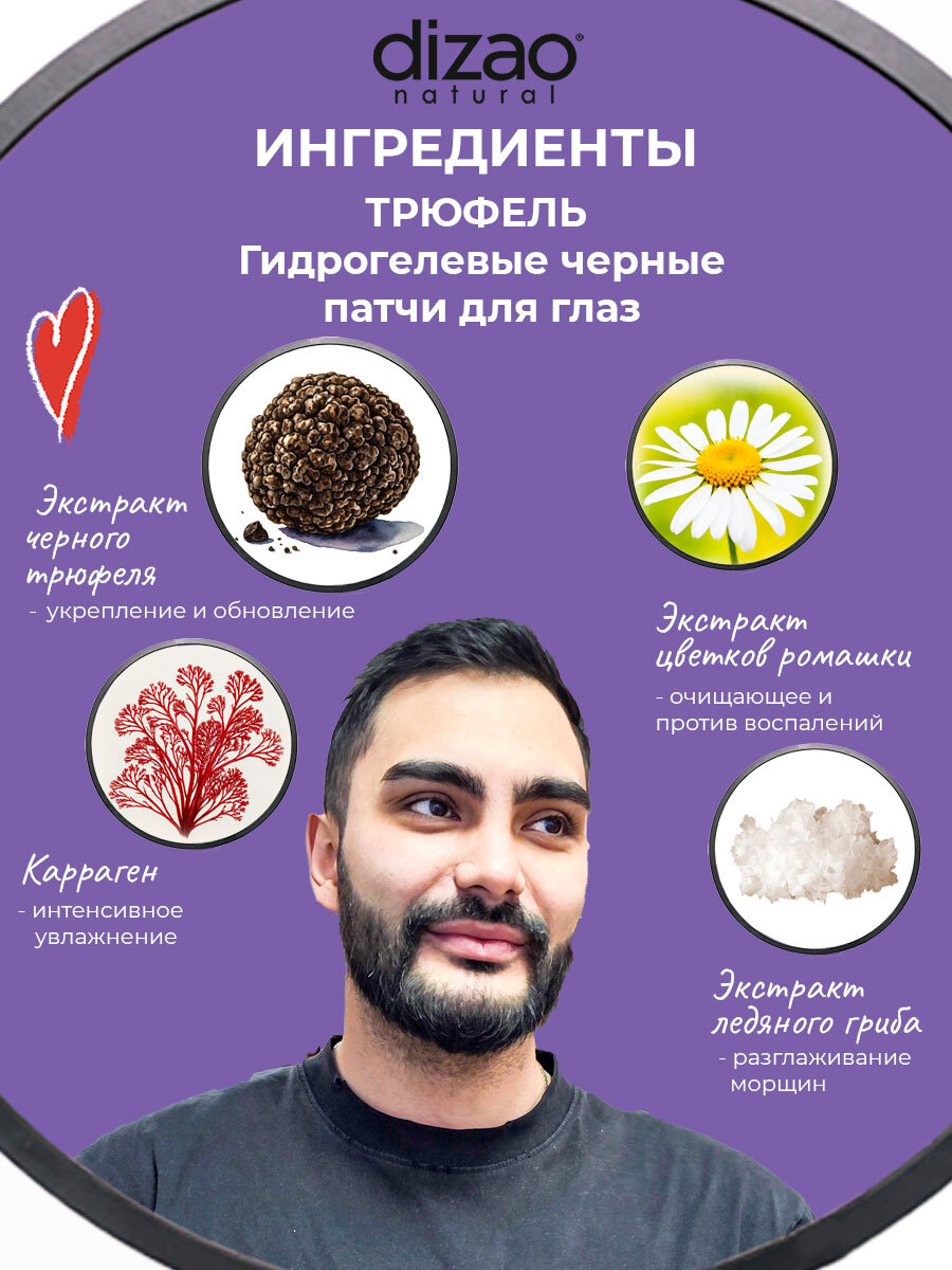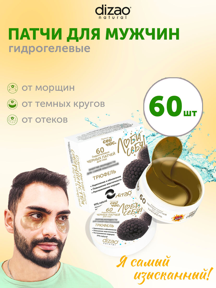 Патчи для глаз мужские от отеков гидрогелевые черные бото набор Dizao "Трюфель" от темных кругов, от морщин 60 шт интересное: