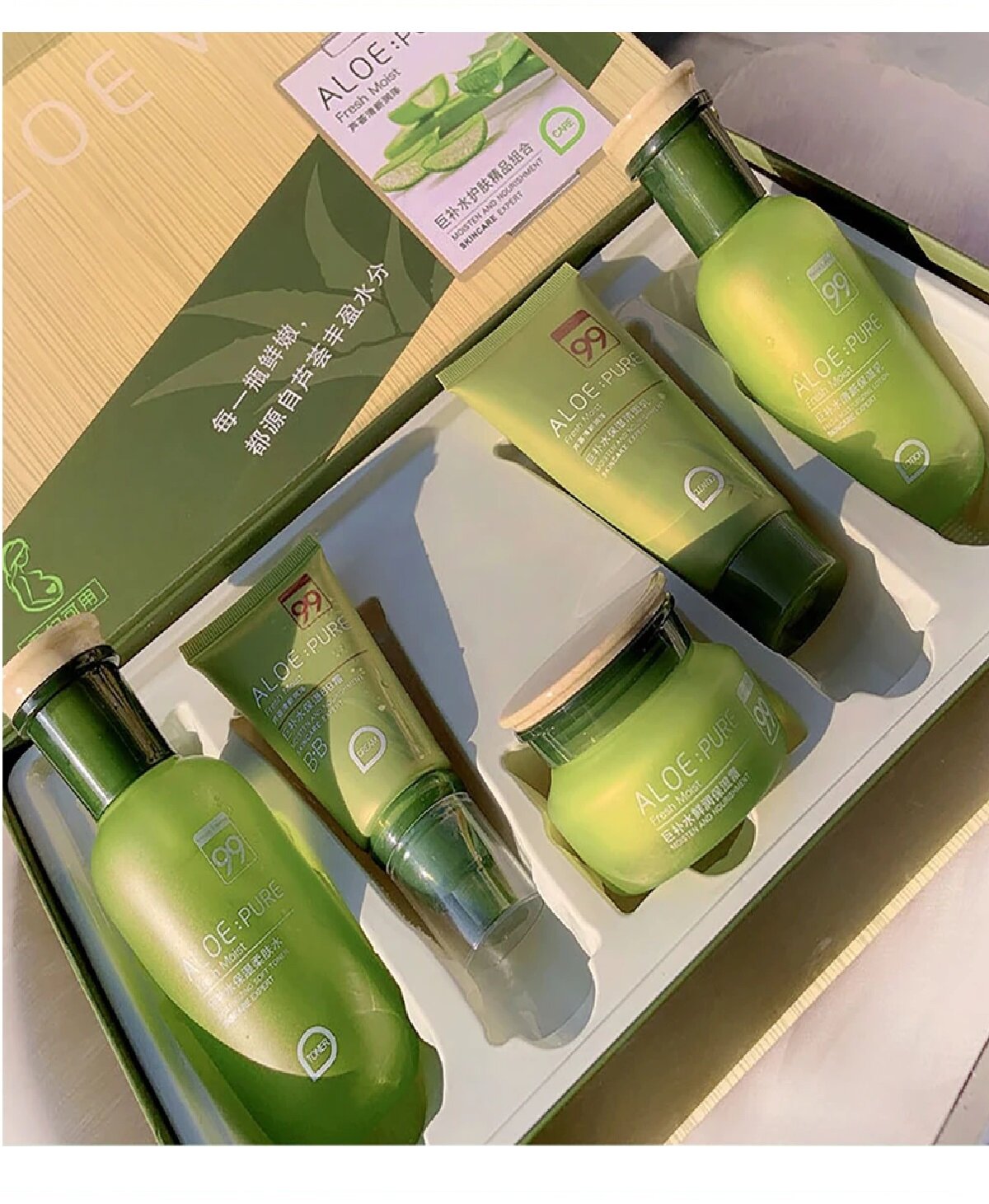 Набор средств для ухода за лицом с экстрактом алое вера из 5 средств интересное: