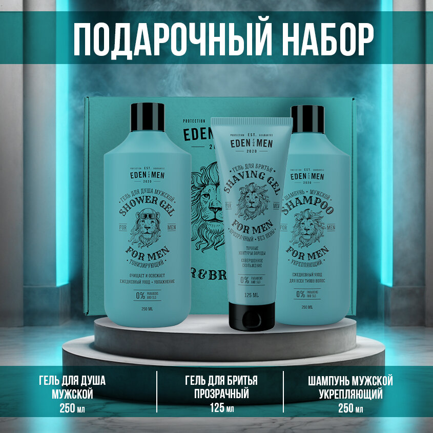 Набор подарочный EDEN FOR MEN для мужчин (шампунь 250 мл, гель для душа 250 мл, гель для бритья прозрачный 125 мл) 10 штук