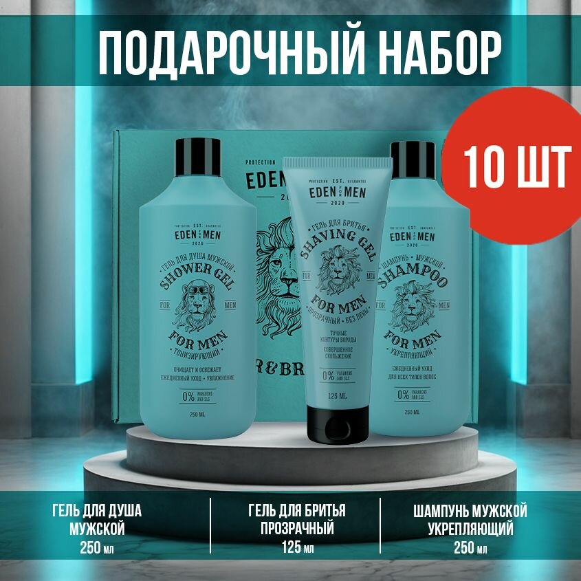 Купить Набор подарочный EDEN FOR MEN для мужчин (шампунь 250 мл, гель для душа 250 мл, гель для бритья прозрачный 125 мл) 10 штук