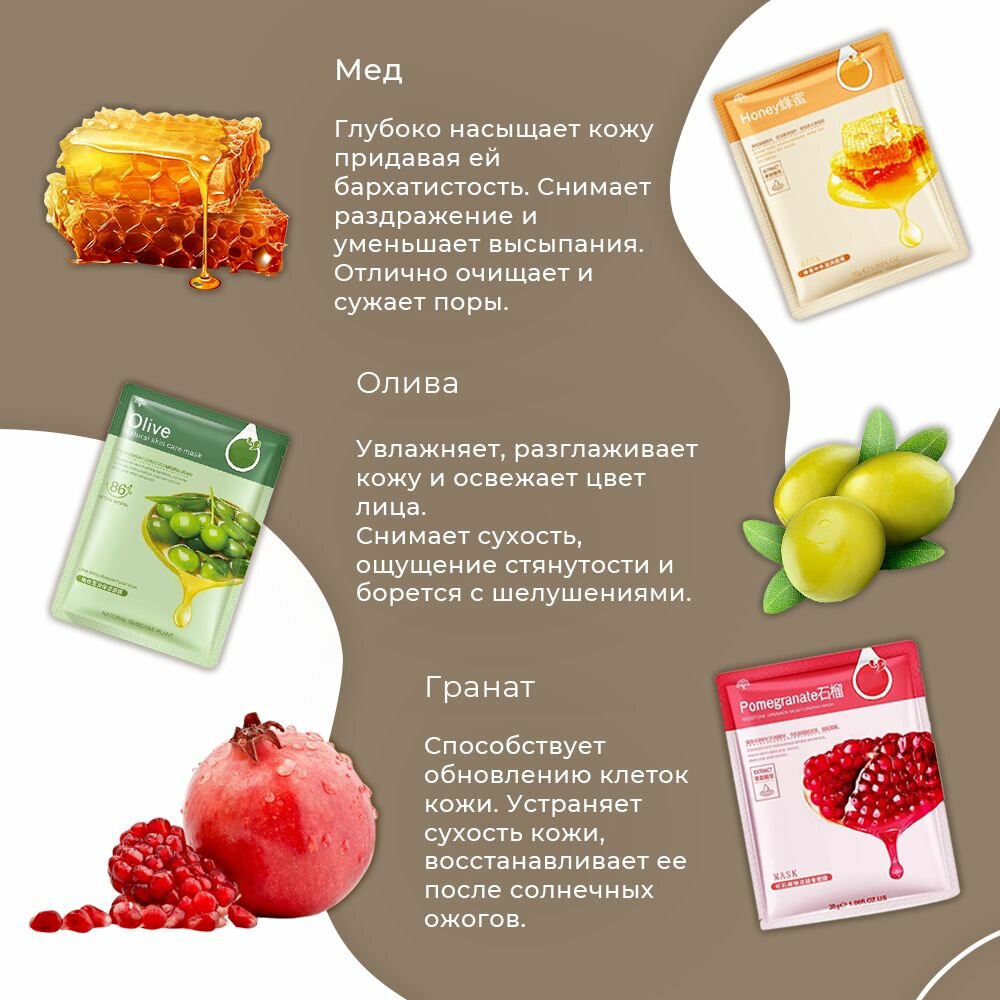 Набор тканевых масок для лица 30 штук увлажняющих, маска косметическая для всех типов кожи интересное: