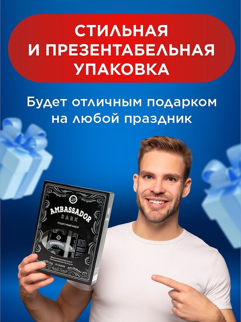 Набор подарочный мужской Q.P. №1121 Ambassador Dark Шампунь-кондиционер для волос 250мл+Гель для душа 250мл интересное: