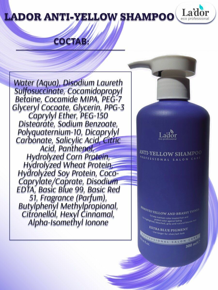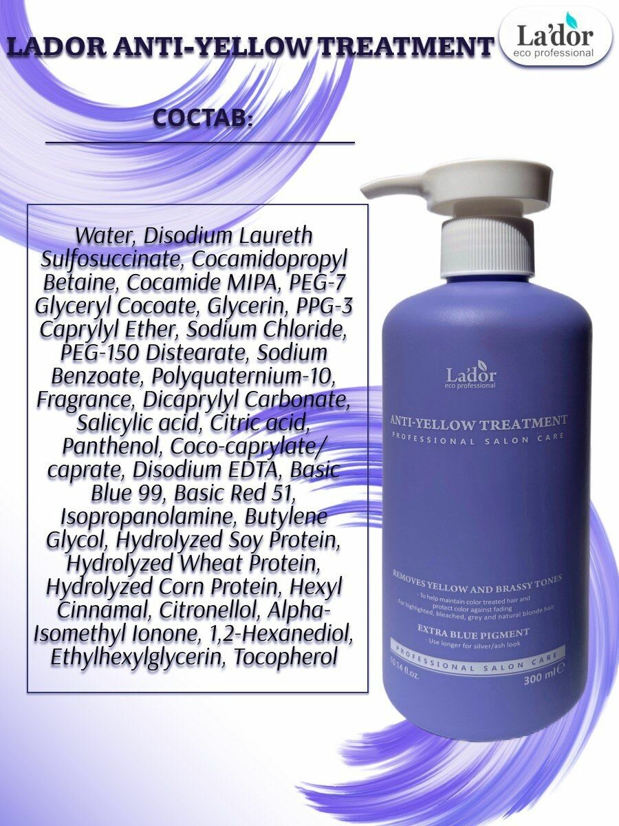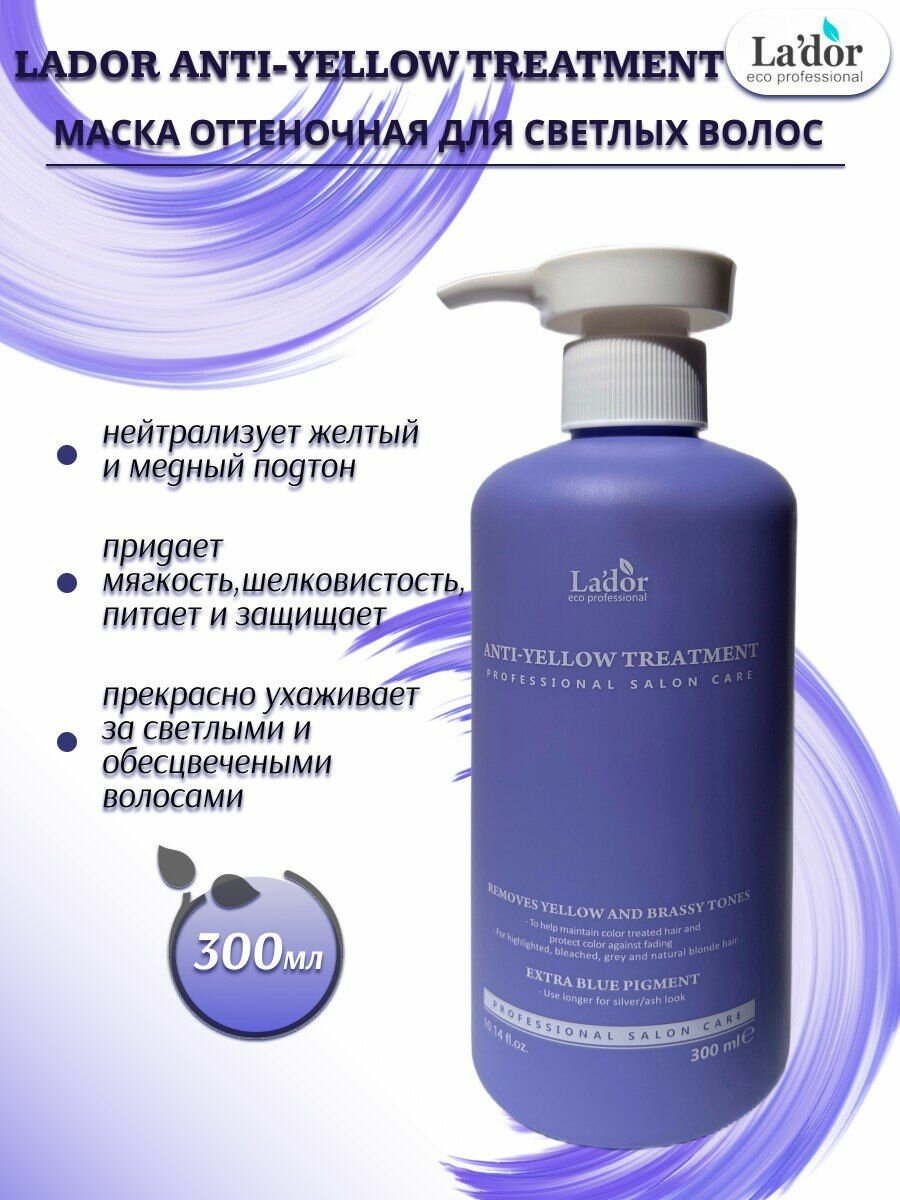 Lador / Набор по уходу за волосами для светлых волос против желтизны Lador Anti-Yellow Shampoo & Treatment 300ml + 300ml интересное:
