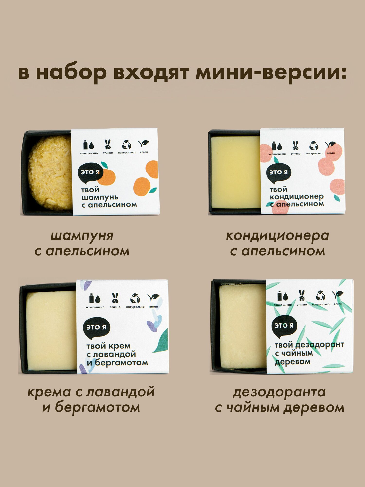 СохранитьЭто я, Мини-набор для базового ухода за телом и волосами / апельсин, чайное дерево, лаванда и бергамот/ набор косметики интересное: