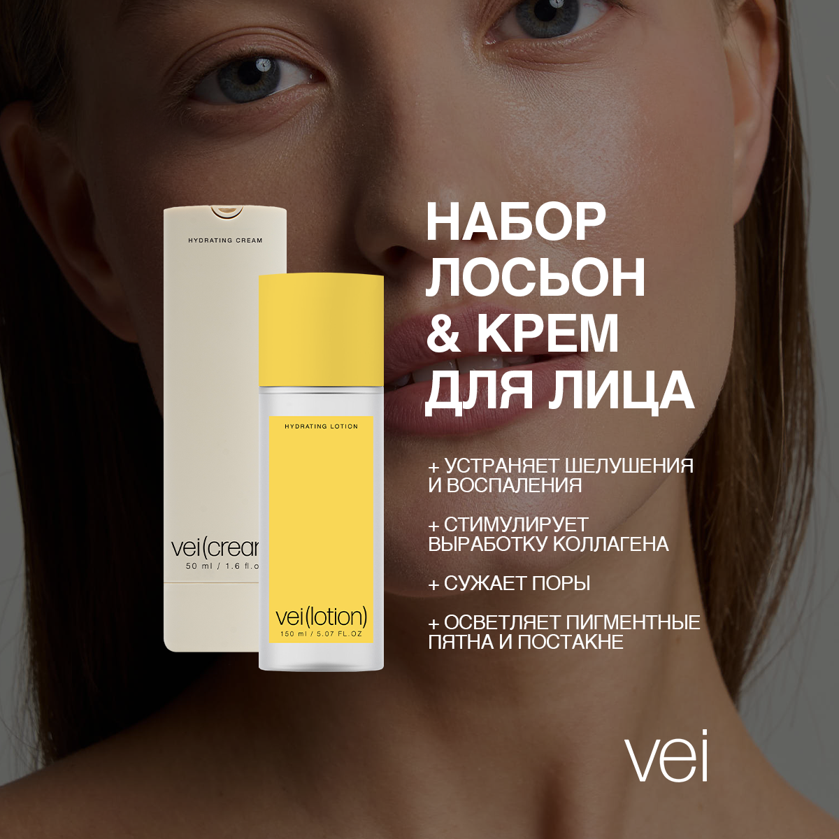 Vei Набор увлажняющий 2 в 1: крем для лица антиоксидантный и сыворотка для лица восстанавливающая с лецитином