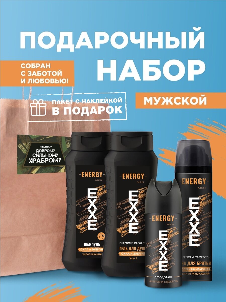 Подарочный набор мужчине EXXE для тела, волос и лица в подарочном пакете интересное:
