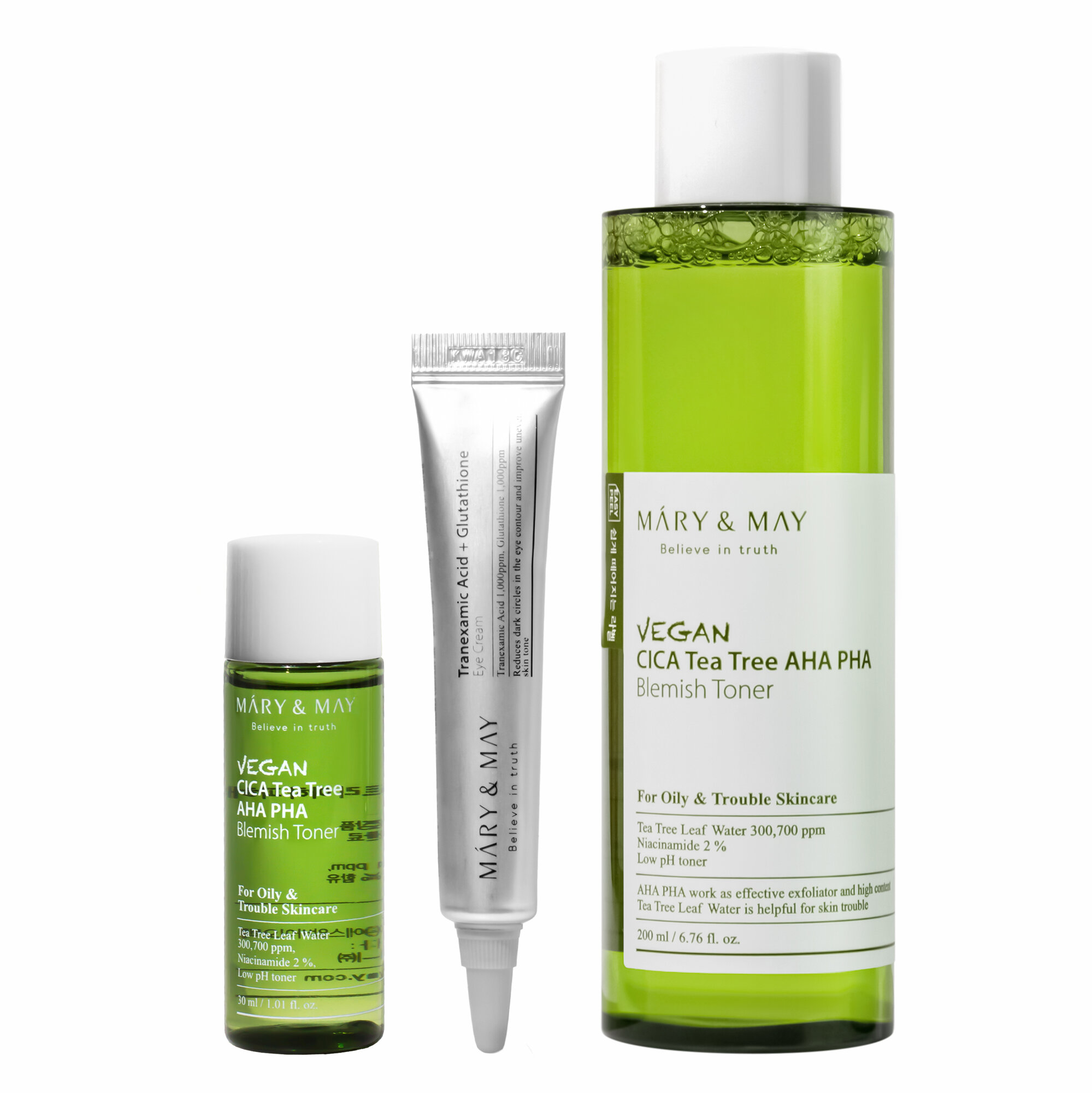 Купить Набор для лица с чайным деревом | MARY&MAY Vegan Cica Teatree Toner Special Set (Тонер 2 шт, крем для век)