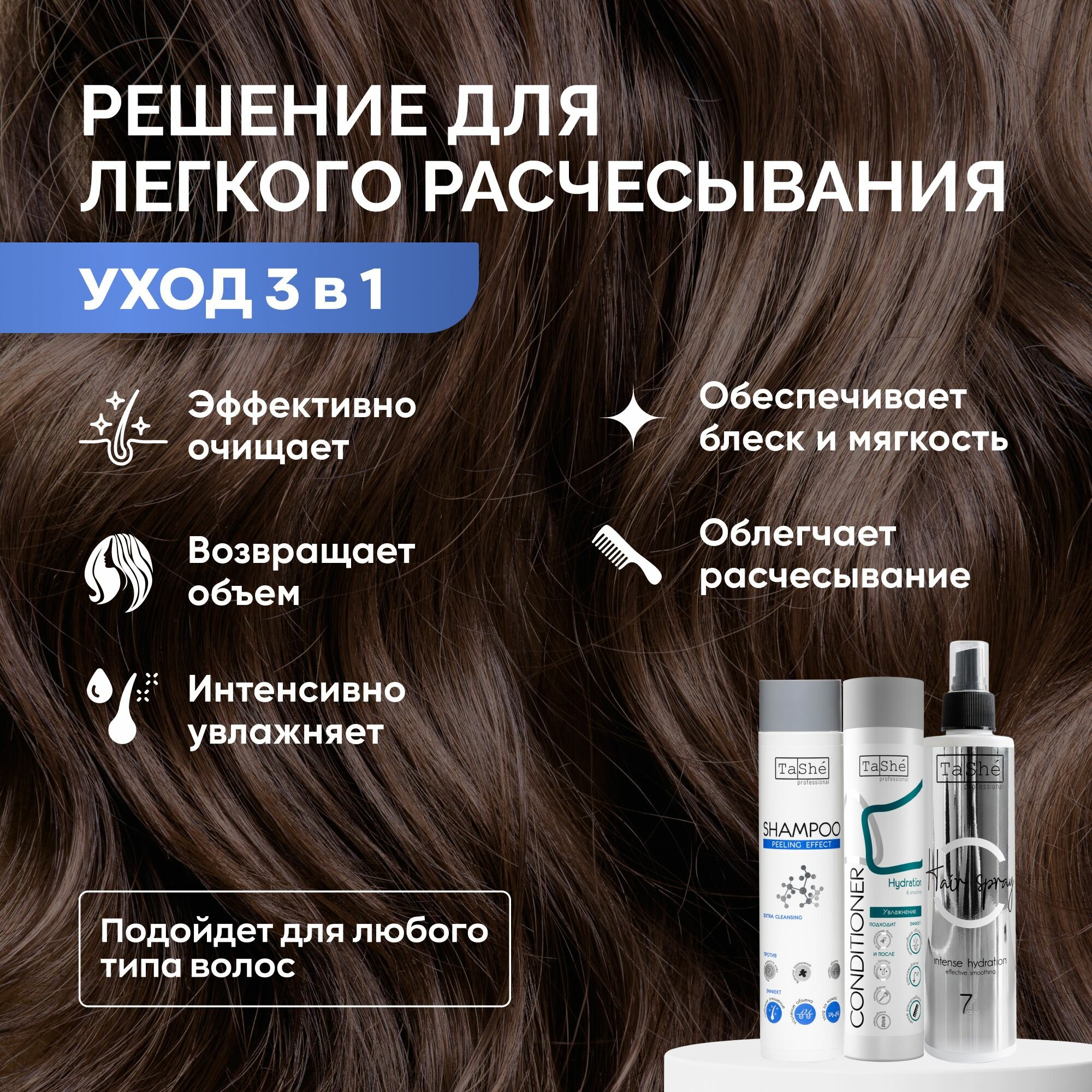 Tashe Набор для ухода за волосами: шампунь 300 мл, кондиционер 300 мл, несмываемый спрей 250 мл интересное: