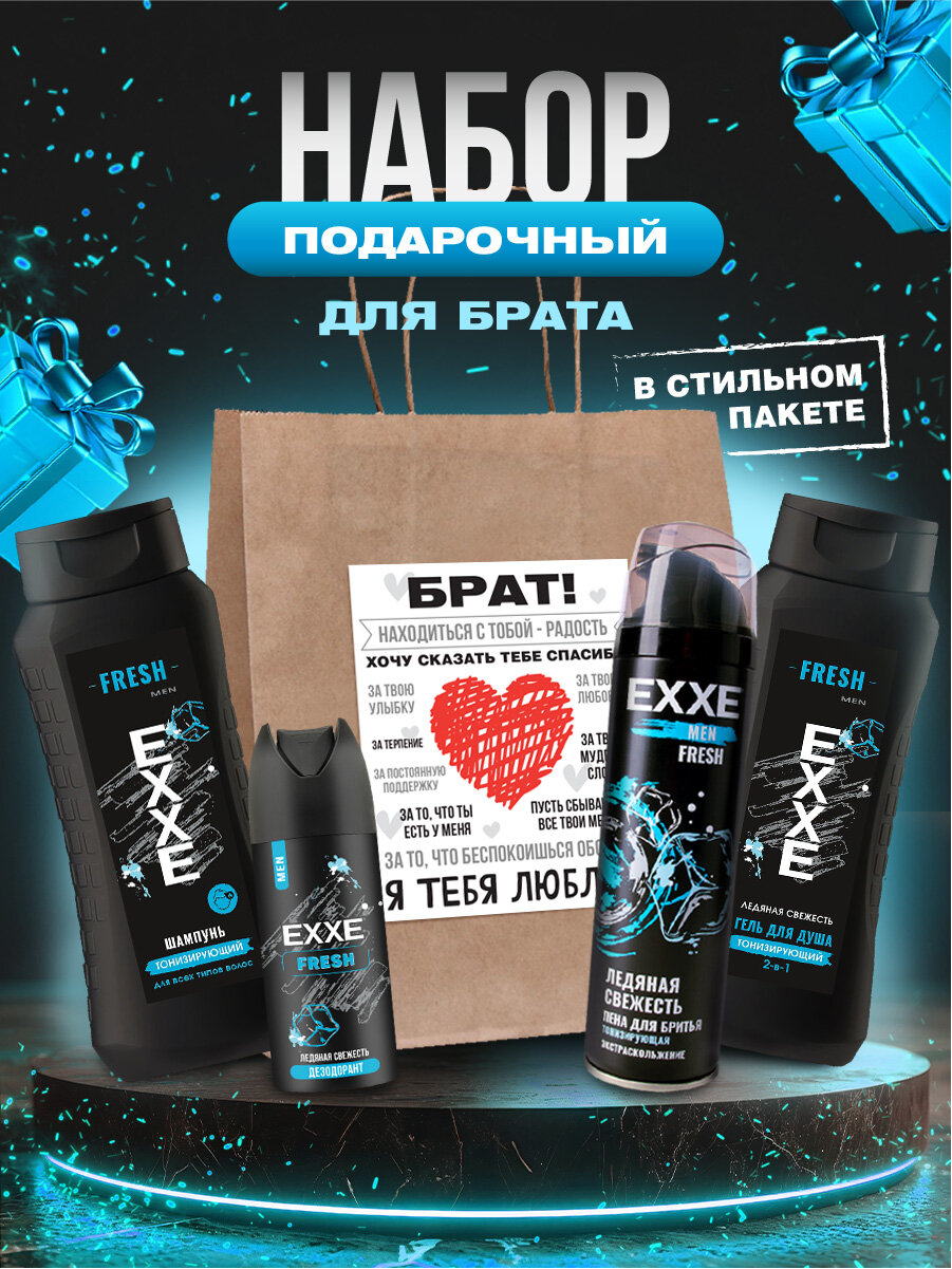 Купить Подарочный набор брату EXXE Брат Пена для бритья 200мл + Дезодорант 150мл + Гель для душа 400мл + Шампунь 400мл