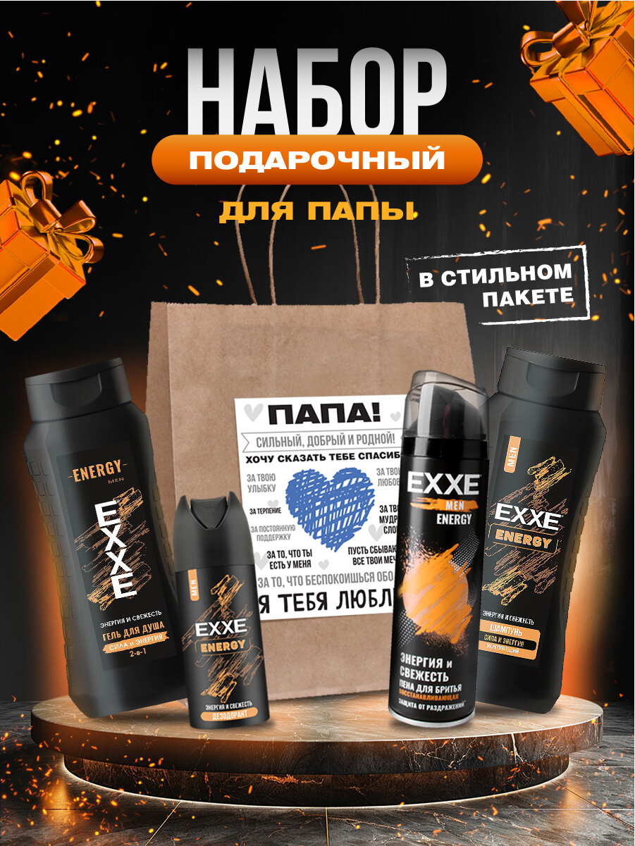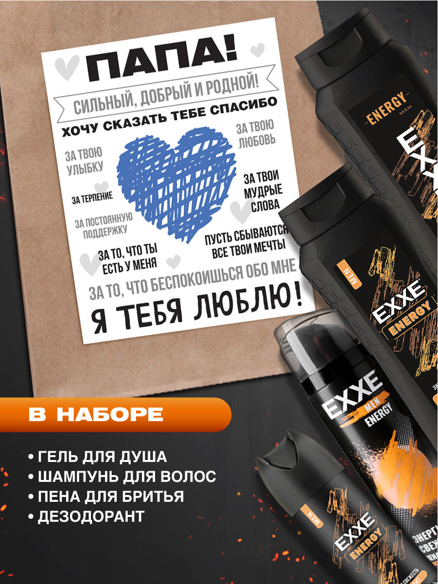 Купить Подарочный набор мужской EXXE Папе Пена для бритья 200мл + Дезодорант 150мл + Гель для душа 400мл + Шампунь 400мл