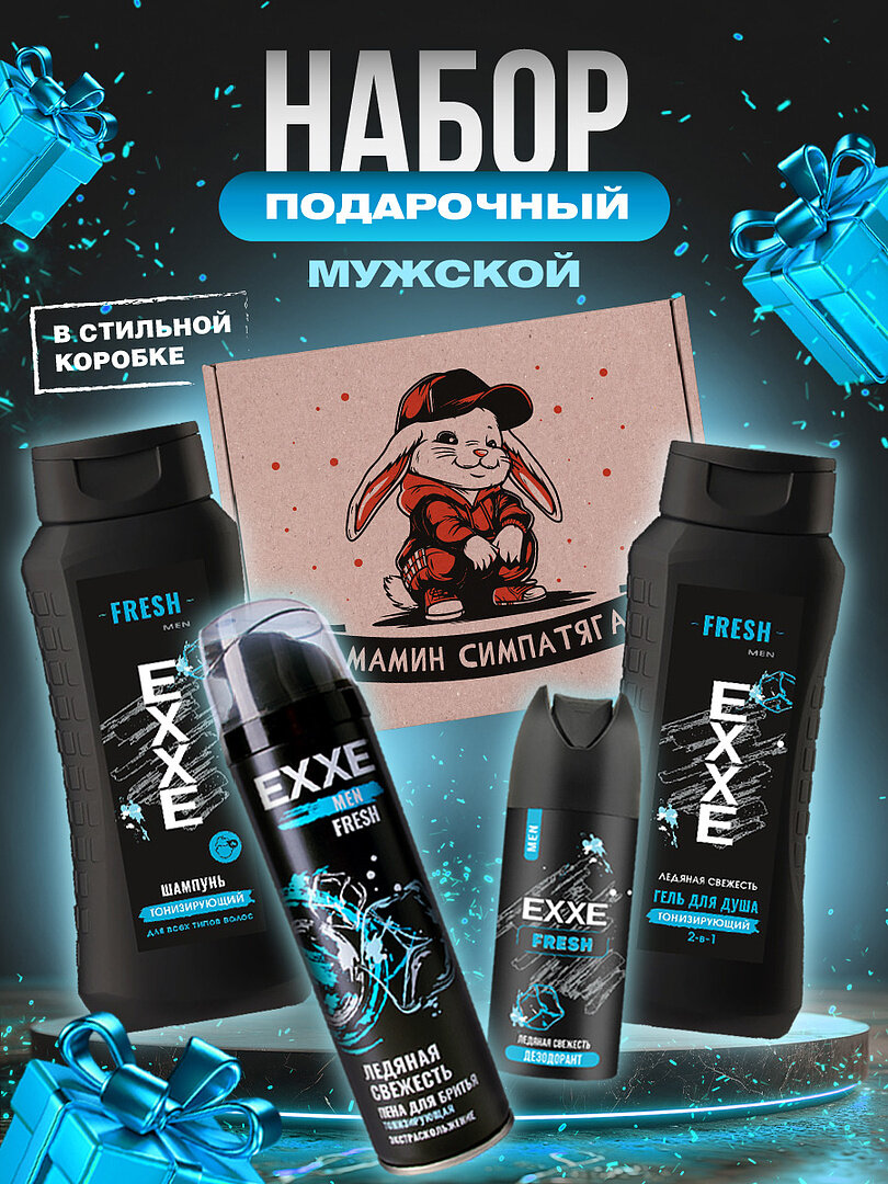 СохранитьПодарочный набор мужской EXXE подарок мужчине Шампунь гель для душа 2в1 + Шампунь + Дезодорант + Пена для бритья интересное: