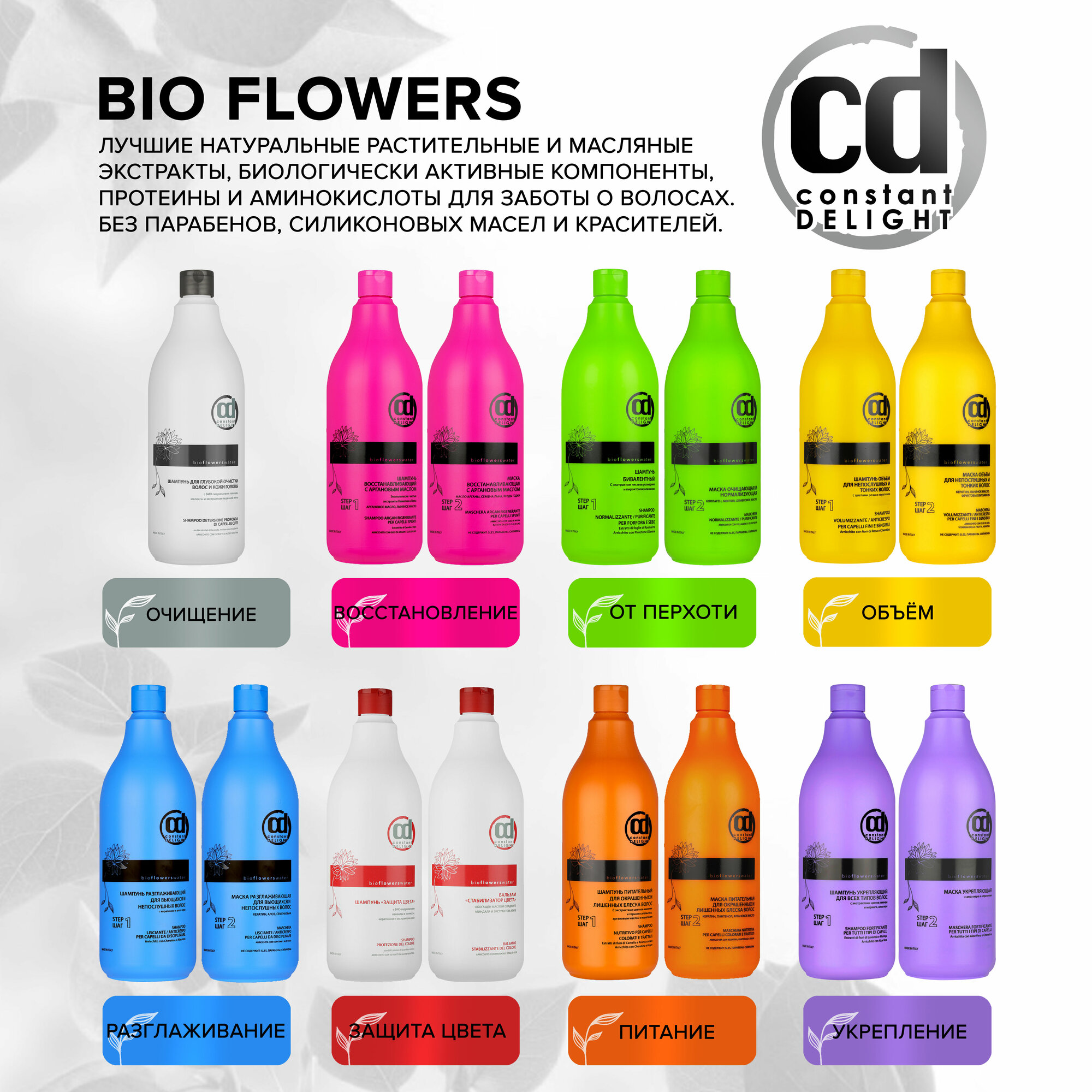 Косметический набор CONSTANT DELIGHT для объема волос BIO FLOWERS 1000+1000 мл интересное: