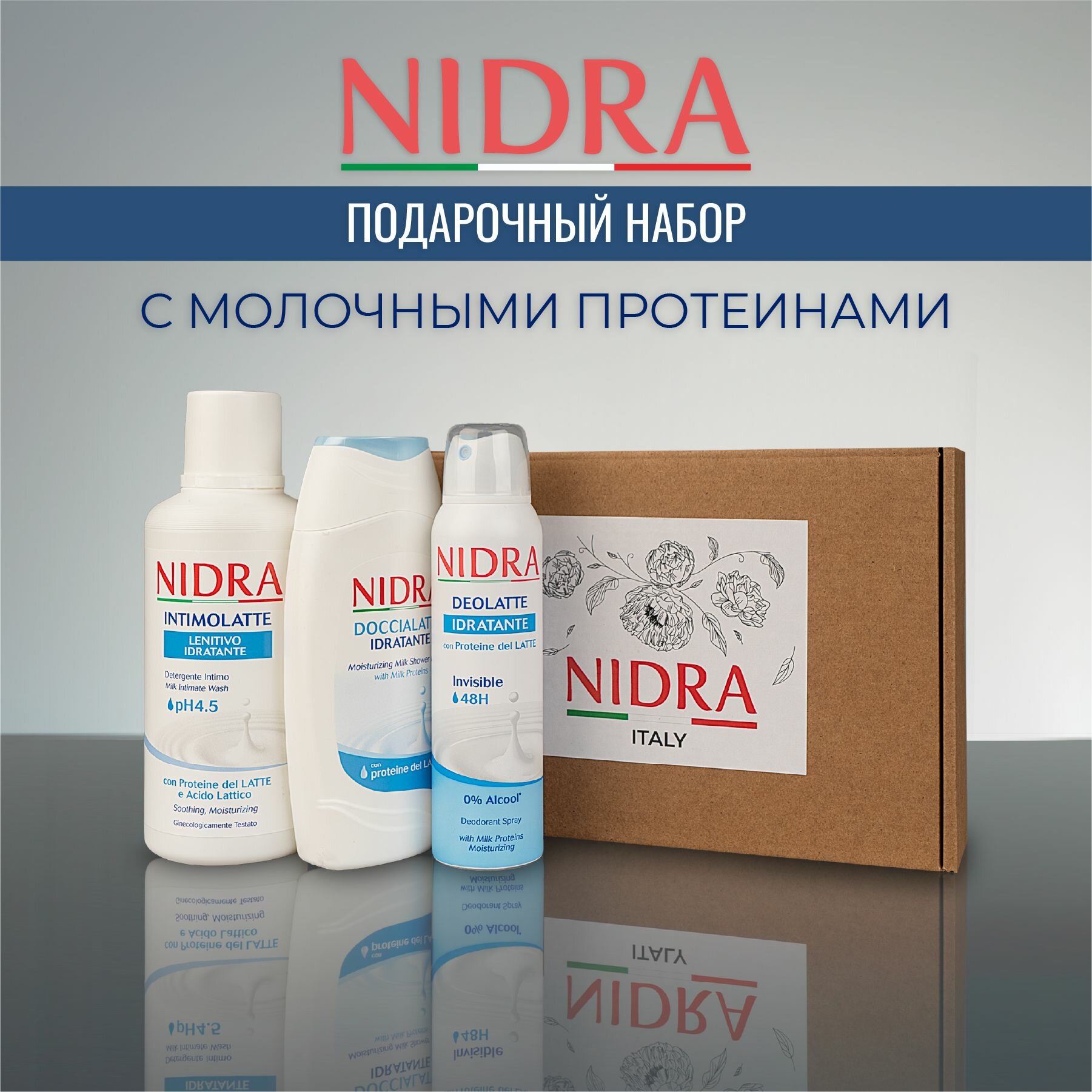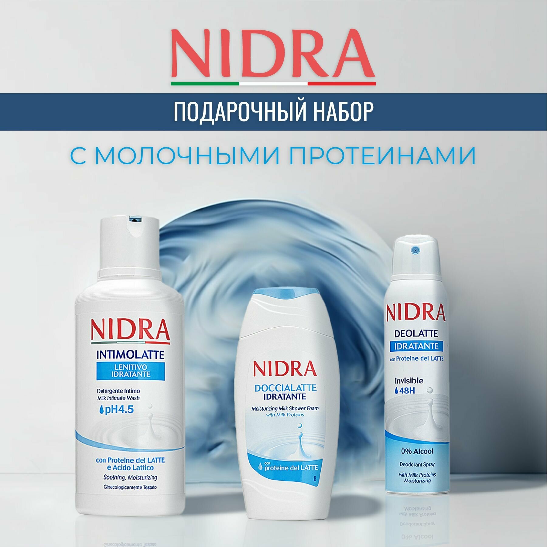 Купить Nidra Подарочный набор косметики для женщин: гель для интимной гигиены 500 мл + дезодорант 150 мл+ пена для душа 250 мл