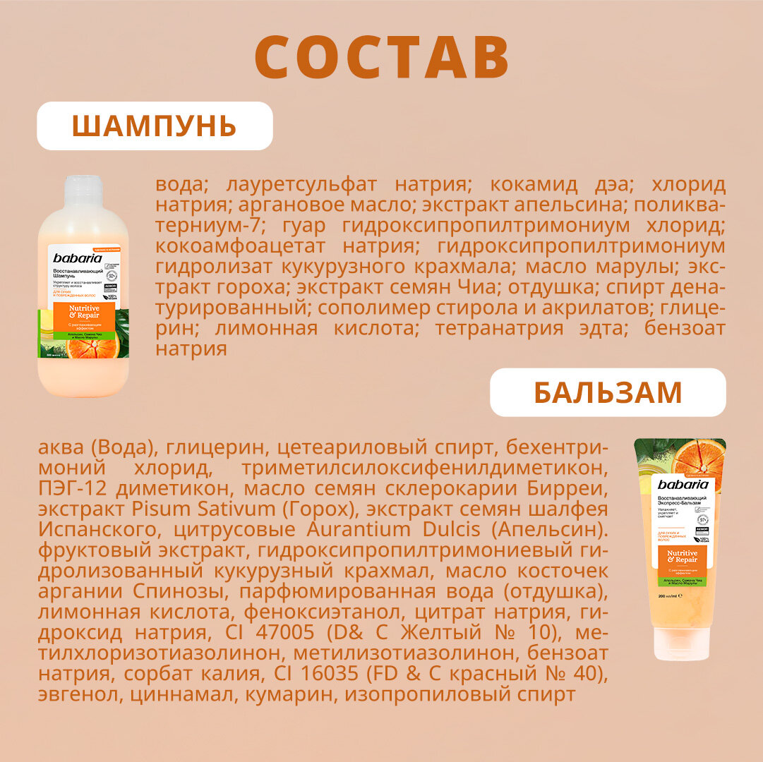 Подарочный набор для волос Babaria Восстанавливающий (Шампунь и Бальзам) интересное: