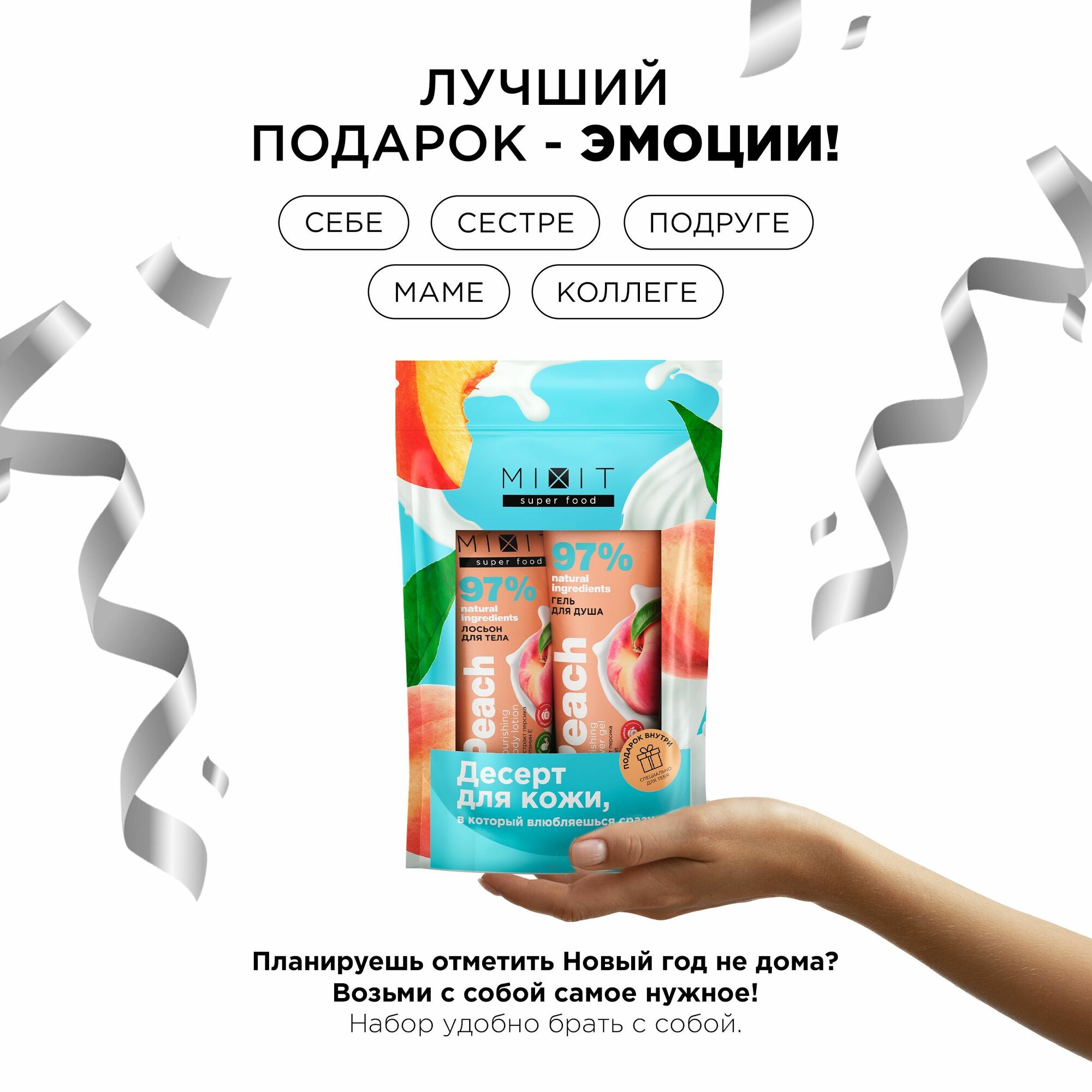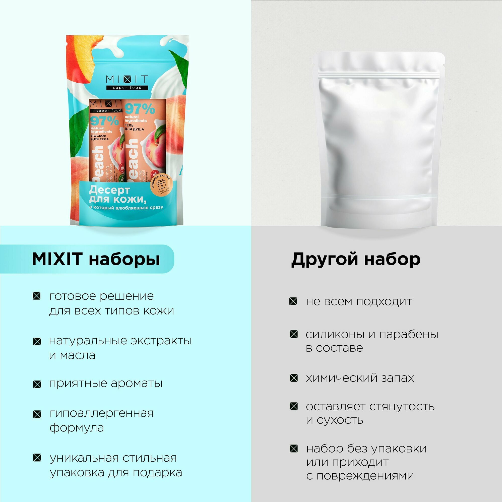 Купить MIXIT Подарочный набор для тела: гель для душа и увлажняющий лосьон с ароматом "Персик" SUPER FOOD