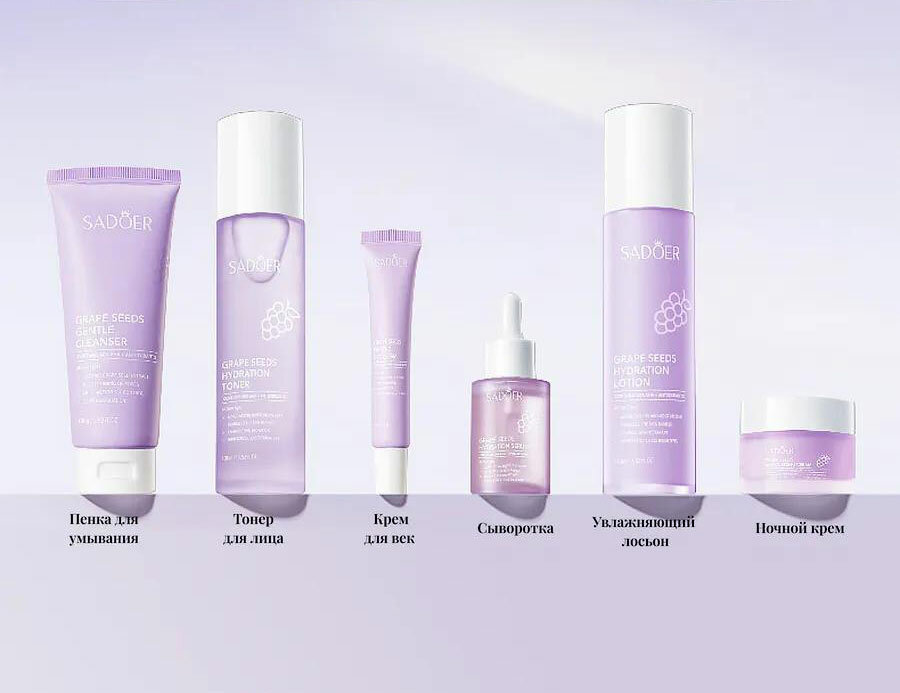 Подарочный комплексный увлажняющий набор SADOER из 6 предметов с экстрактом виноградных косточек интересное: