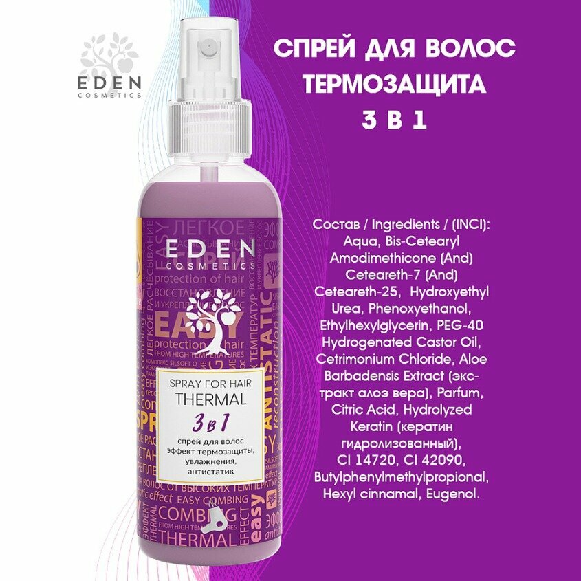 Набор подарочный EDEN для ухода за волосами Потрясающий объем (шампунь, бальзам, термозащита)