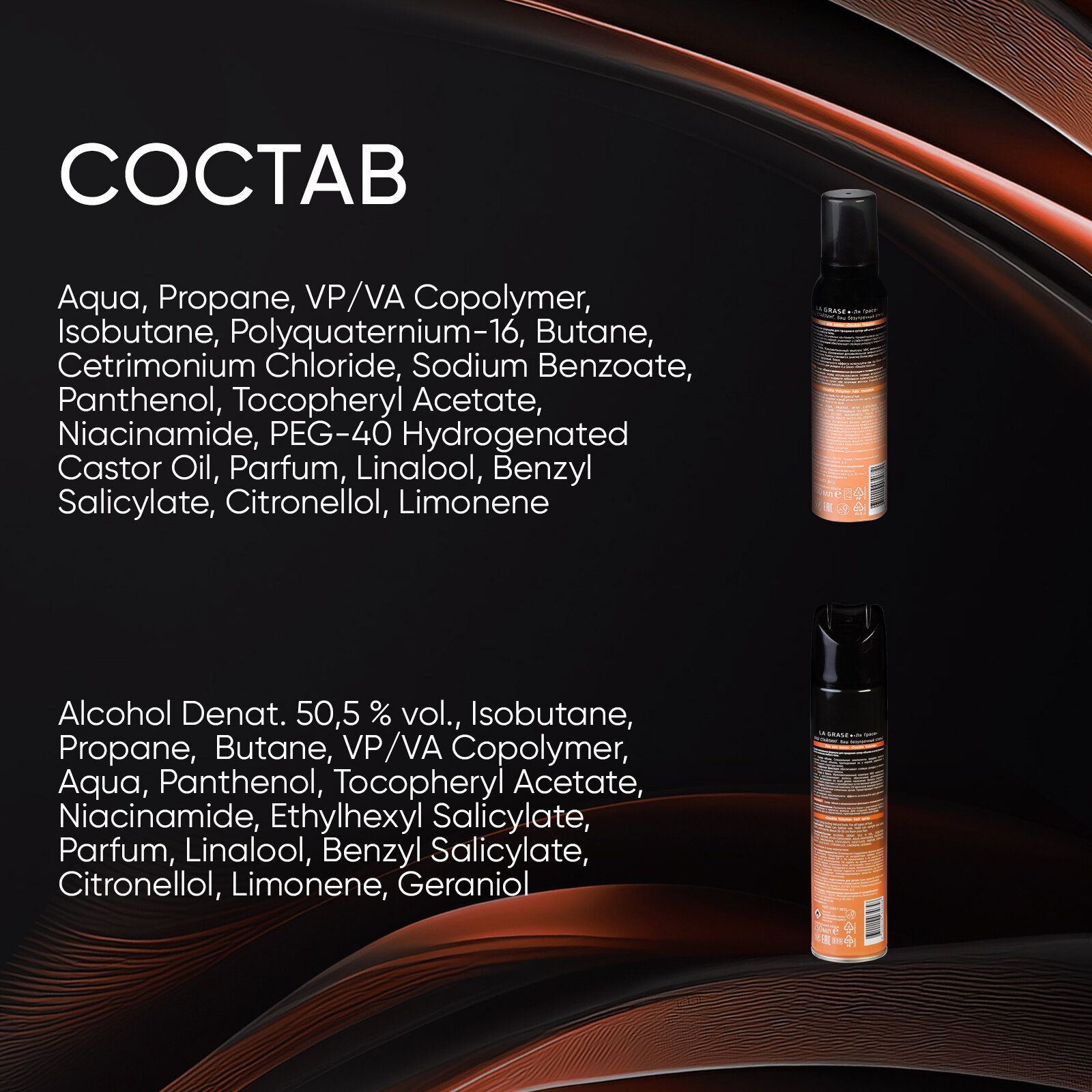 Лак для волос La Grase Double Volume 250 мл + мусс для укладки волос 150 мл, набор Голливудский объем интересное: