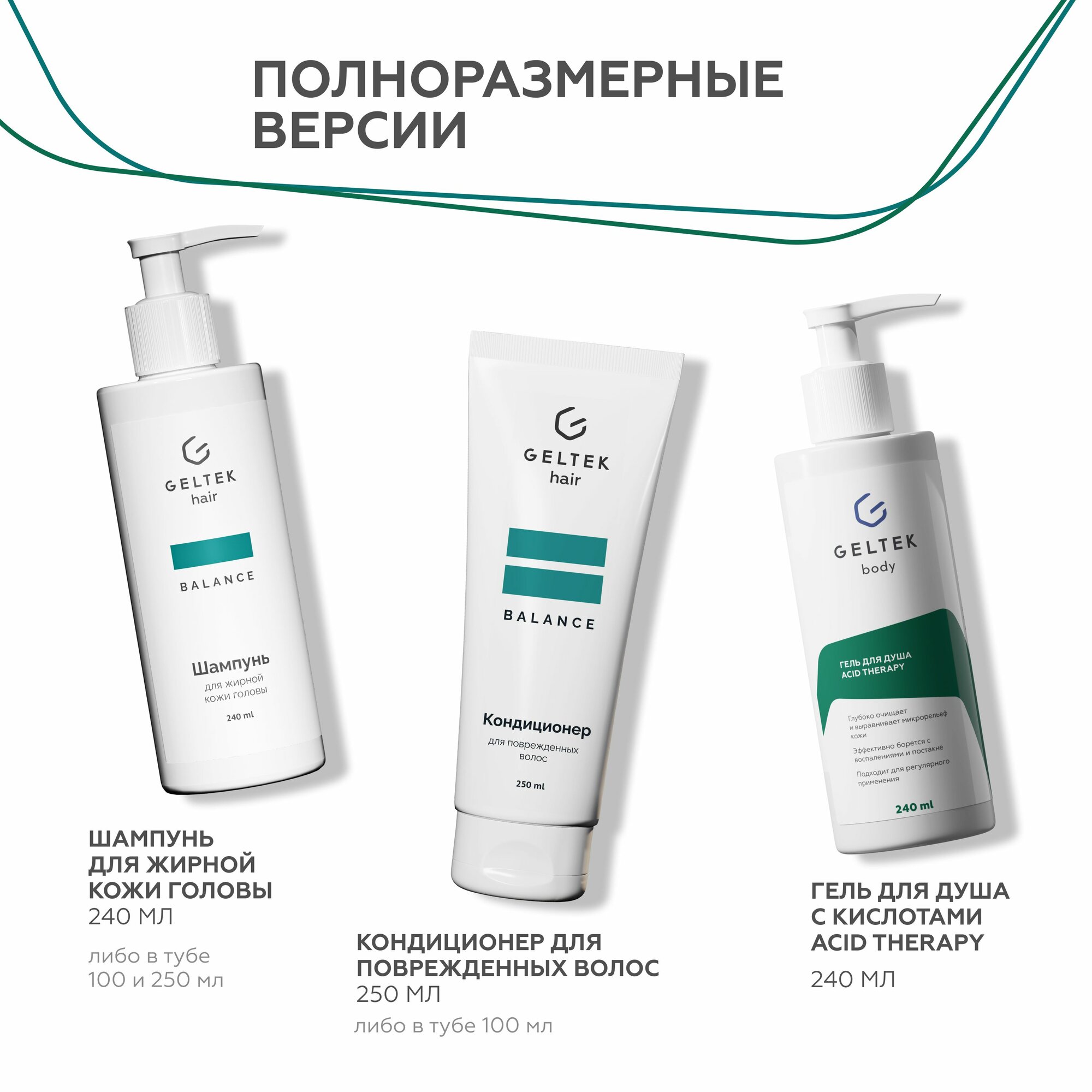 Гельтек Набор шампунь для жирных волос и бальзам для поврежденных волос, 2 шт по 30 мл