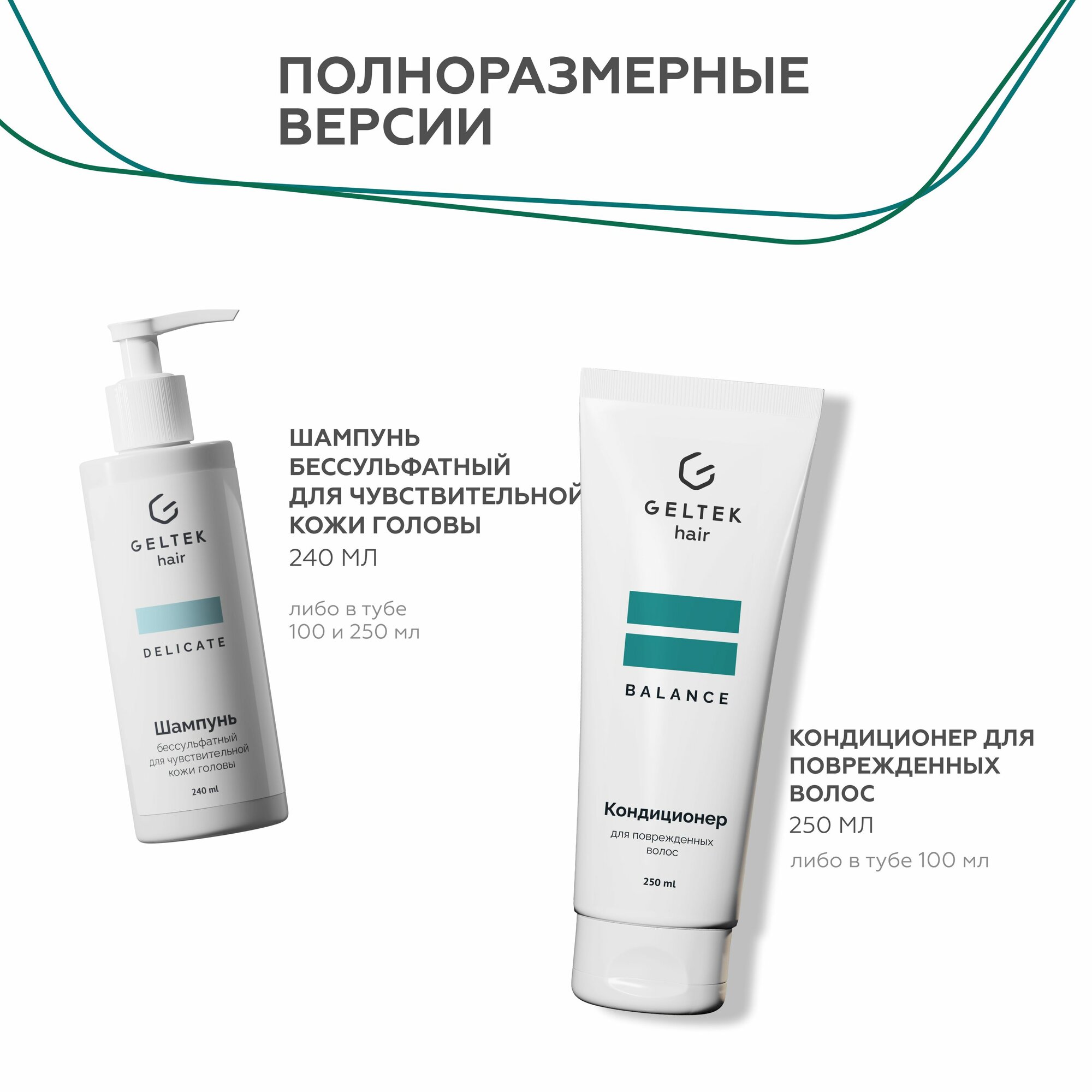 Купить Гельтек Набор шампунь бессульфатный для чувствительной кожи головы и бальзам для поврежденных волос, 2 шт по 30 мл