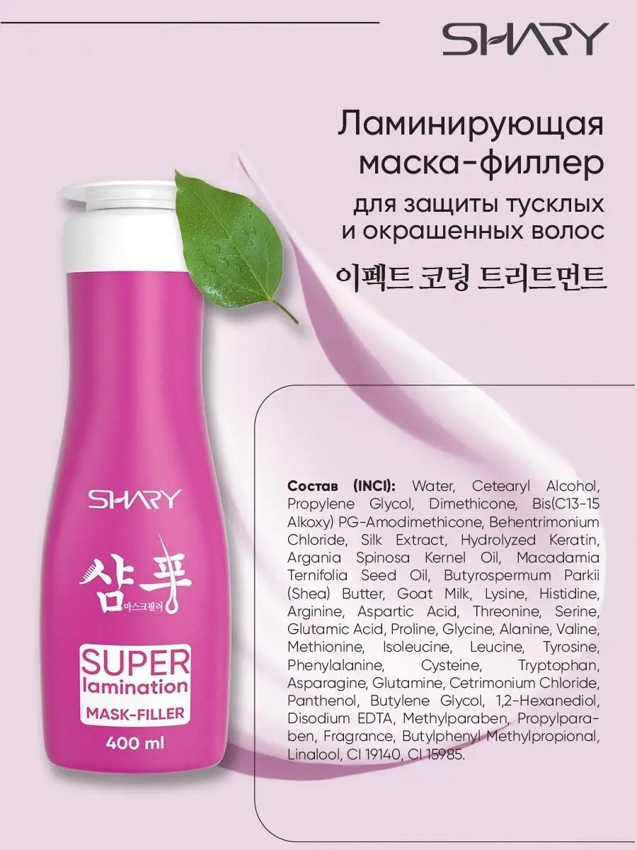 Маска-филлер SHARY Super Lamination, 400мл, без силиконов, гипоаллергенная интересное:
