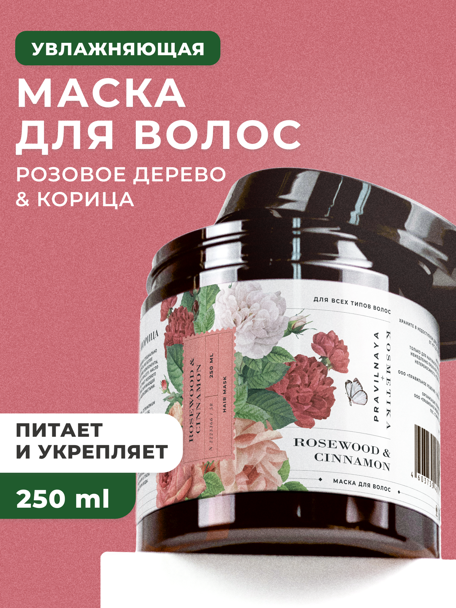 Маска для всех типов волос Pravilnaya Kosmetika увлажняющая и питательная, Розовое дерево и корица, 250 мл интересное: