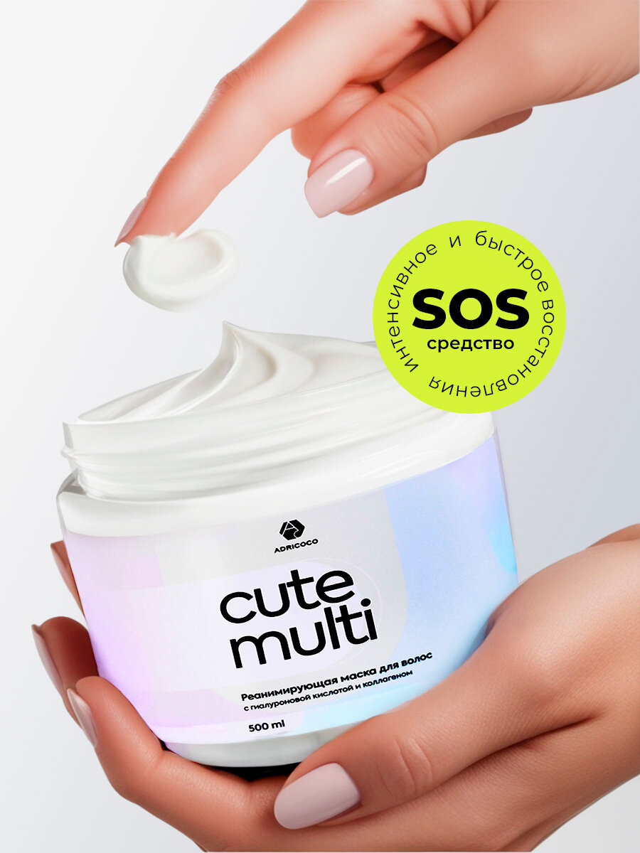 Adricoco, CUTE MULTI - реанимирующая маска для волос с гиалуроновой кислотой и коллагеном, 500 мл интересное: